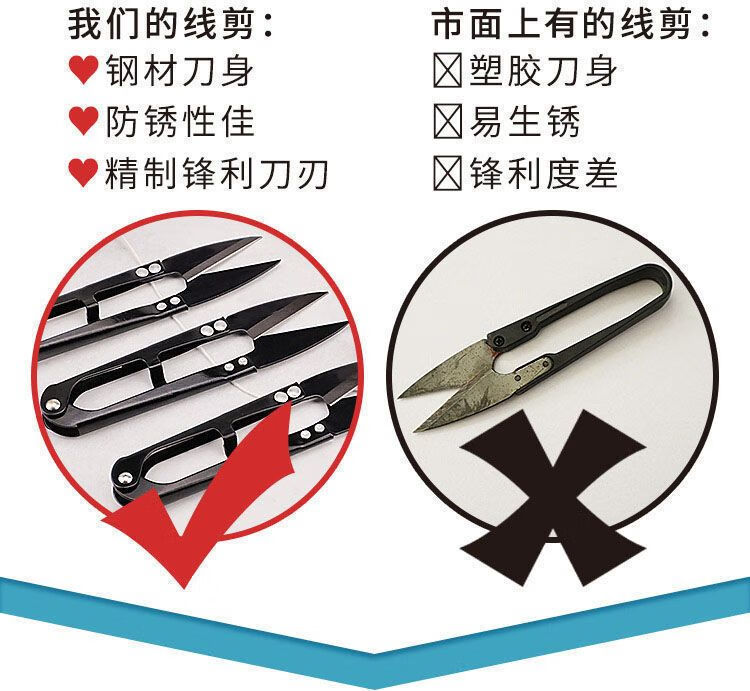 Fat Donglai's same household u-shaped scissors, small carbon steel scissors for thread cutting, handmade scissors, cross stitch, tailor's yarn cutting, buy 5+5 10-pack U-shaped carbon steel yarn scissors (random color)