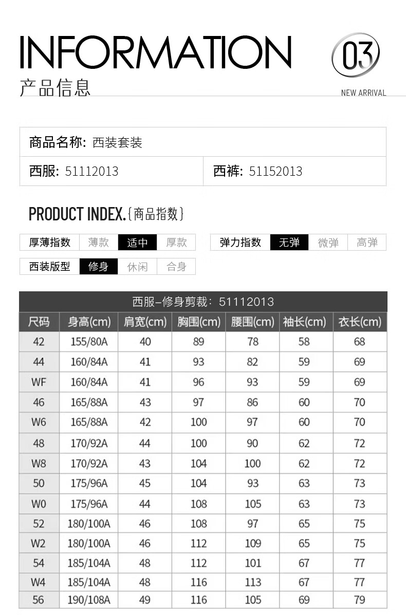 China (cm) 160-165/84-86 165-170 / 88-90 167-172 / 92-96 168-173 / 98-102 170-176 / 106-110