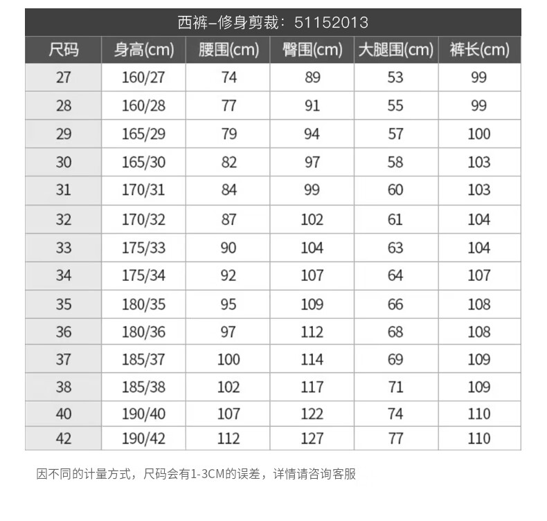 Outseam (cm) 99 cm 101.5 cm 104 cm 106.5 cm 109 cm