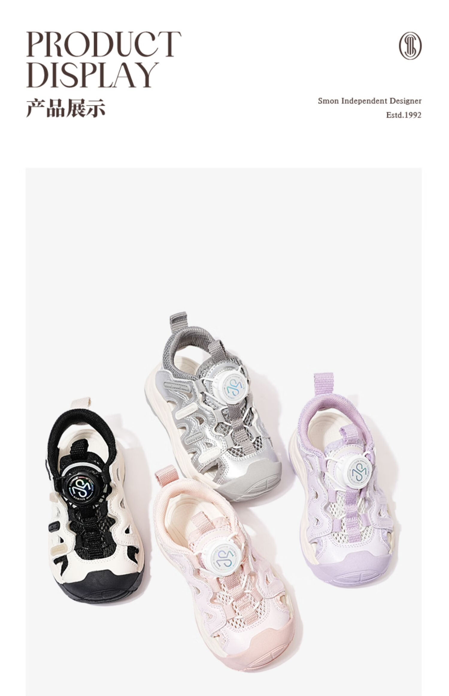 Shu Meng Children's Sports Shoes Spring and Summer New Girls Sandals Hollow Breathable Baby Shoes Outdoor Wading Boys Shuoxi Shoes Black 24 Inner Length 15cm