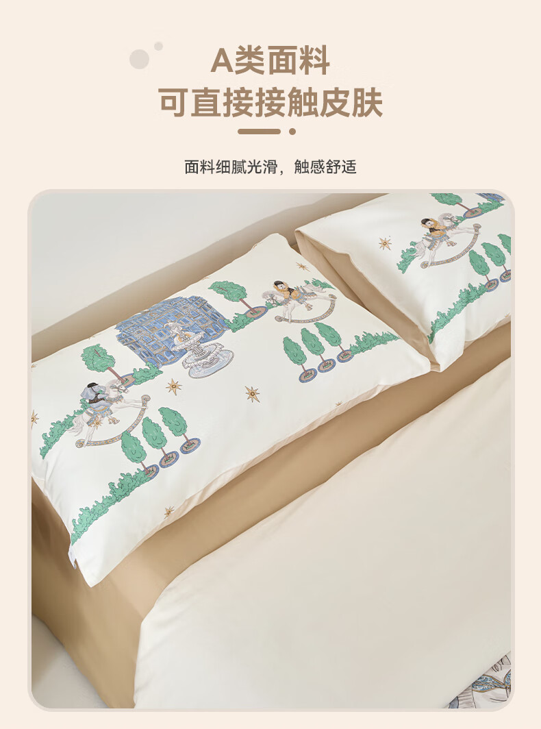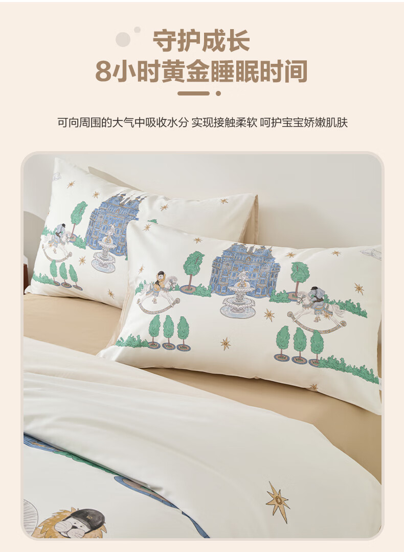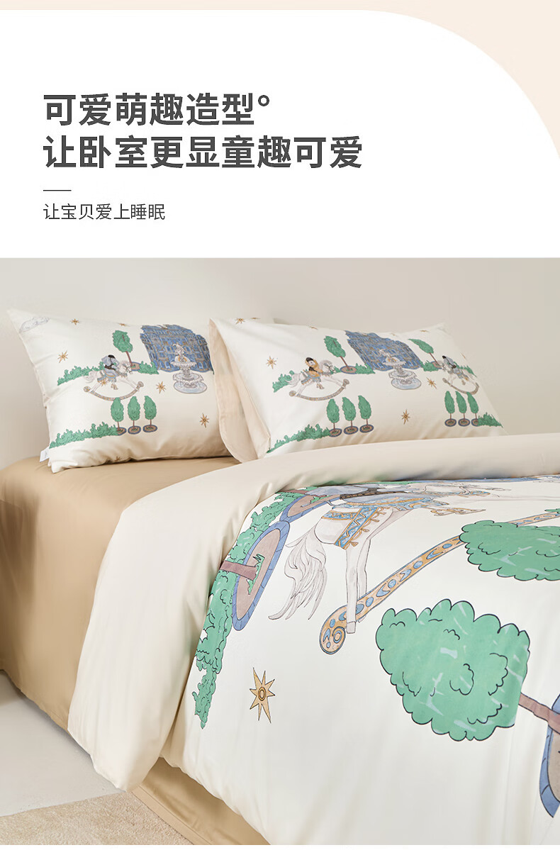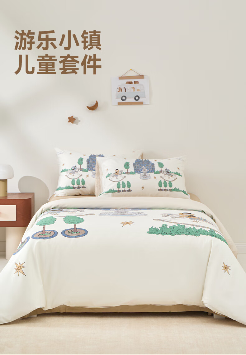 YEEHOO children's bed four-piece set pure cotton Class A 60-count cartoon cotton quilt cover student dormitory three-piece set pure cotton 60-count amusement town 2.0 meter bed sheet type quilt cover 220*240cm