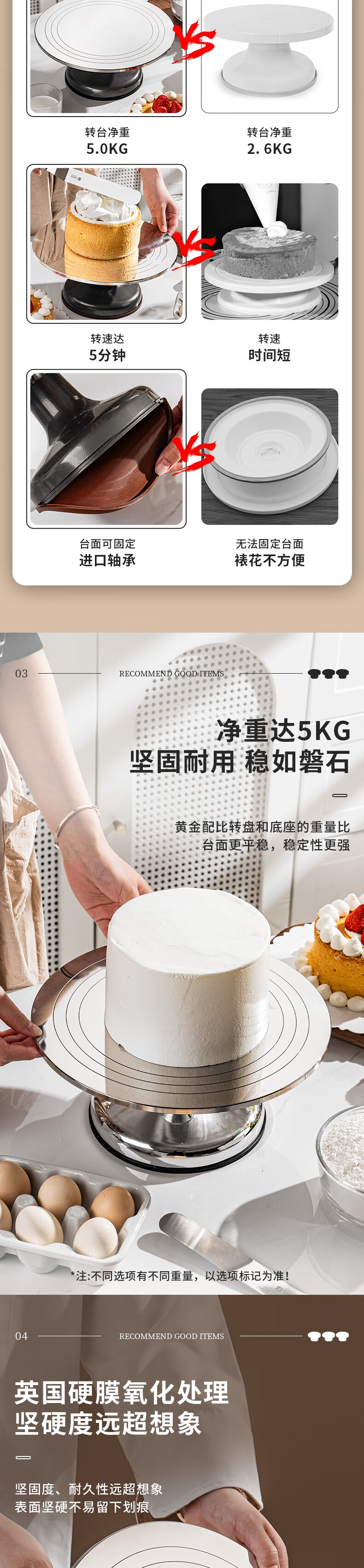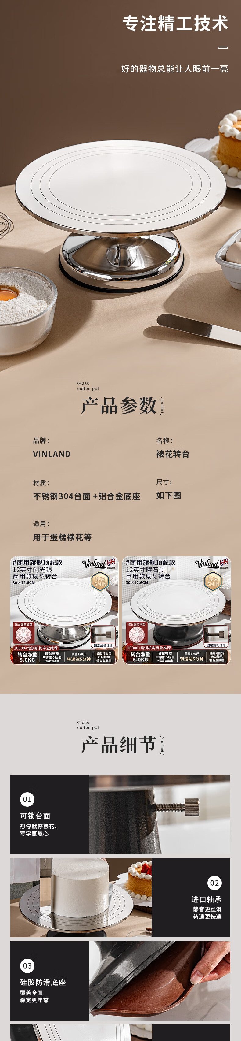 Vinland British decorating table baking cake tray decorating turntable tool birthday 12-inch plate wiper turntable rotating commercial 12-inch black luxury turntable + silicone anti-slip mat