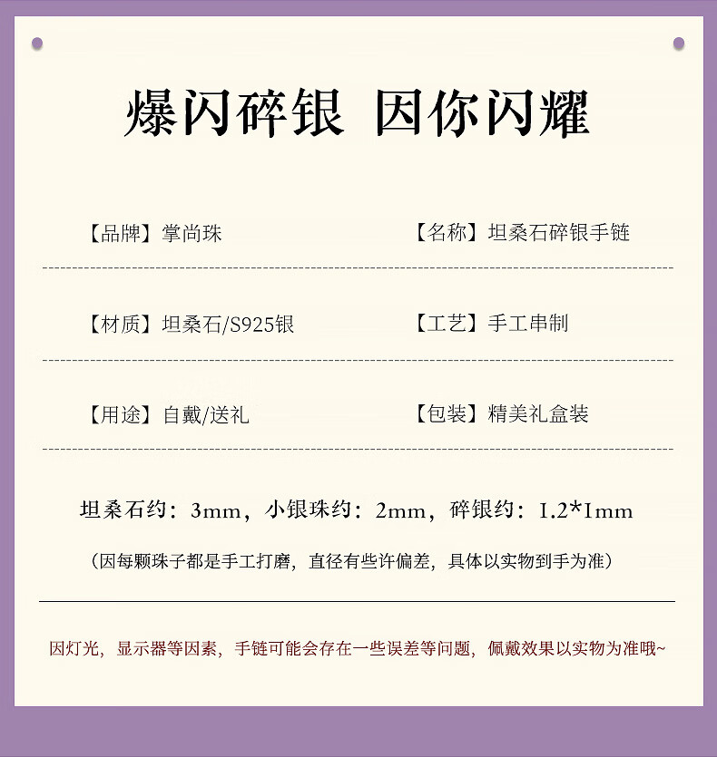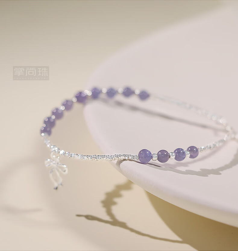 Youshu Tanzanite Crushed Silver Several Liang Pure Silver Bracelet for Women Transfer Beads s925 Silver Light Luxury Jewelry Niche Design for Best Friend Tanzanite Crushed Silver Several Liang Bracelet
