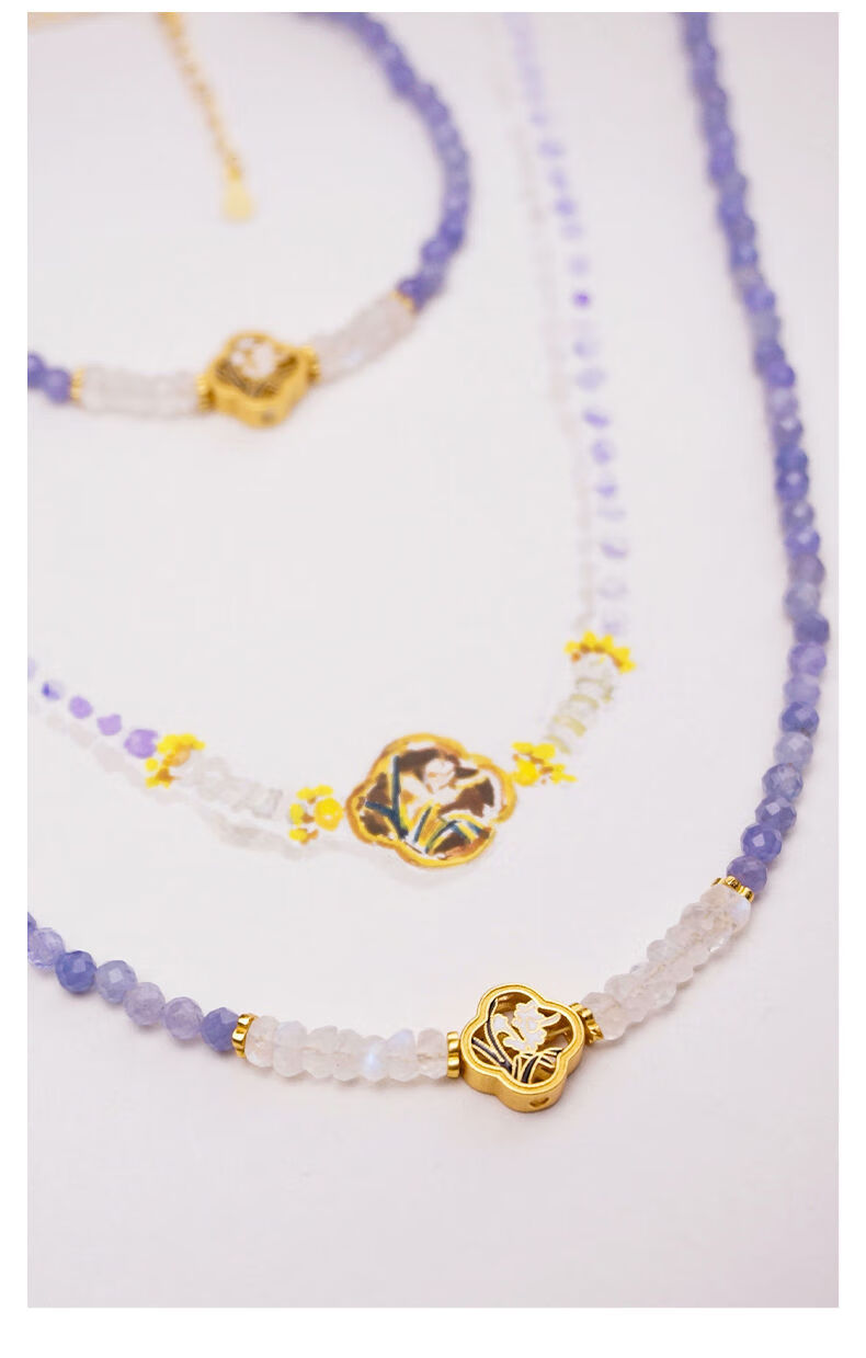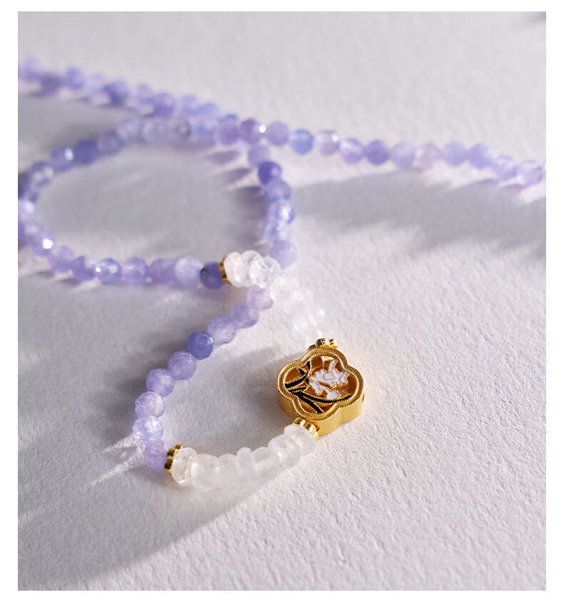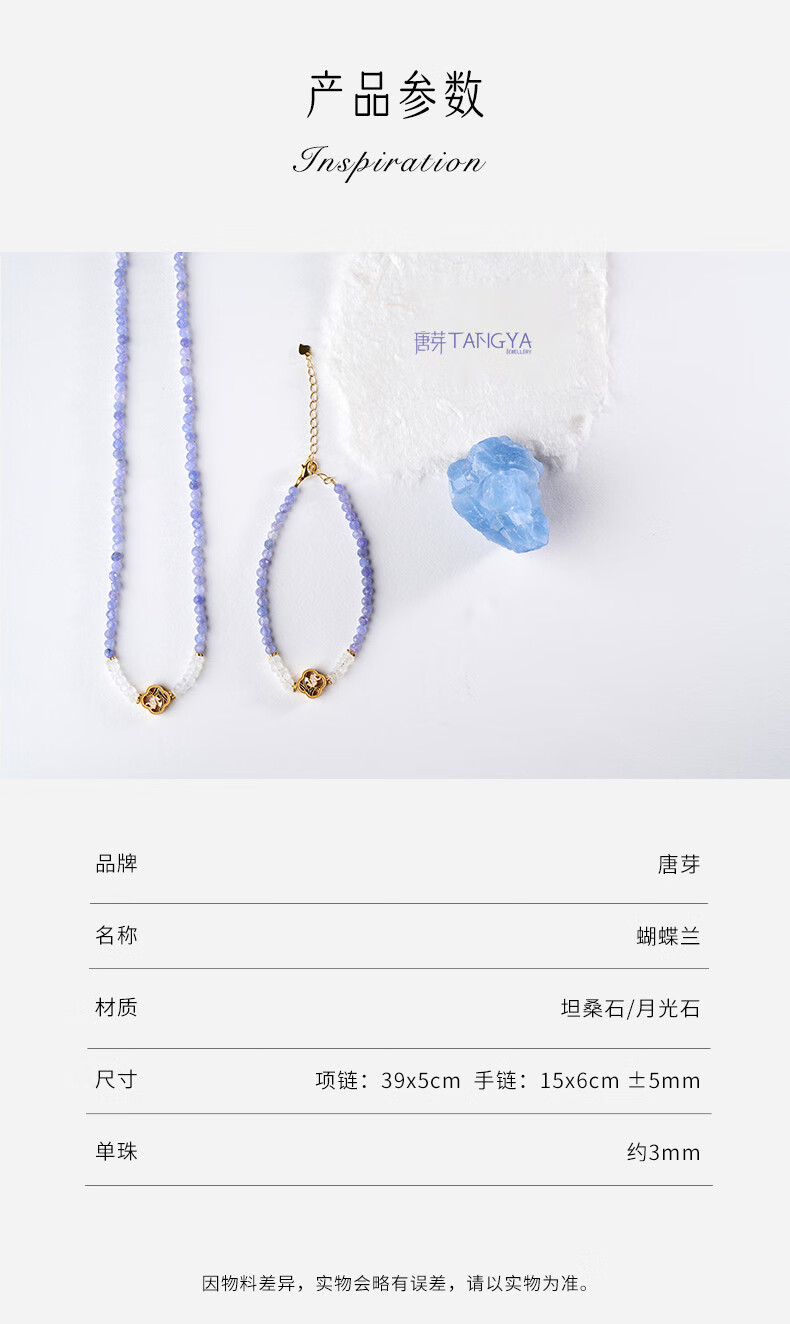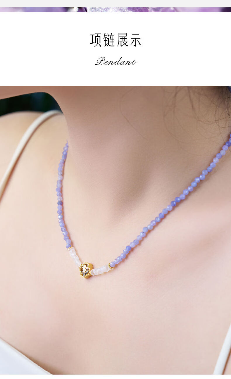 Youshu Authentic Natural Phalaenopsis Natural Tanzanite Bracelet Women's Niche High-end Jewelry Handmade Pendant Phalaenopsis Tanzanite Necklace 39+5CM