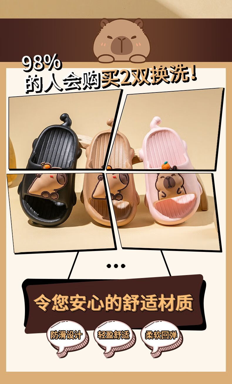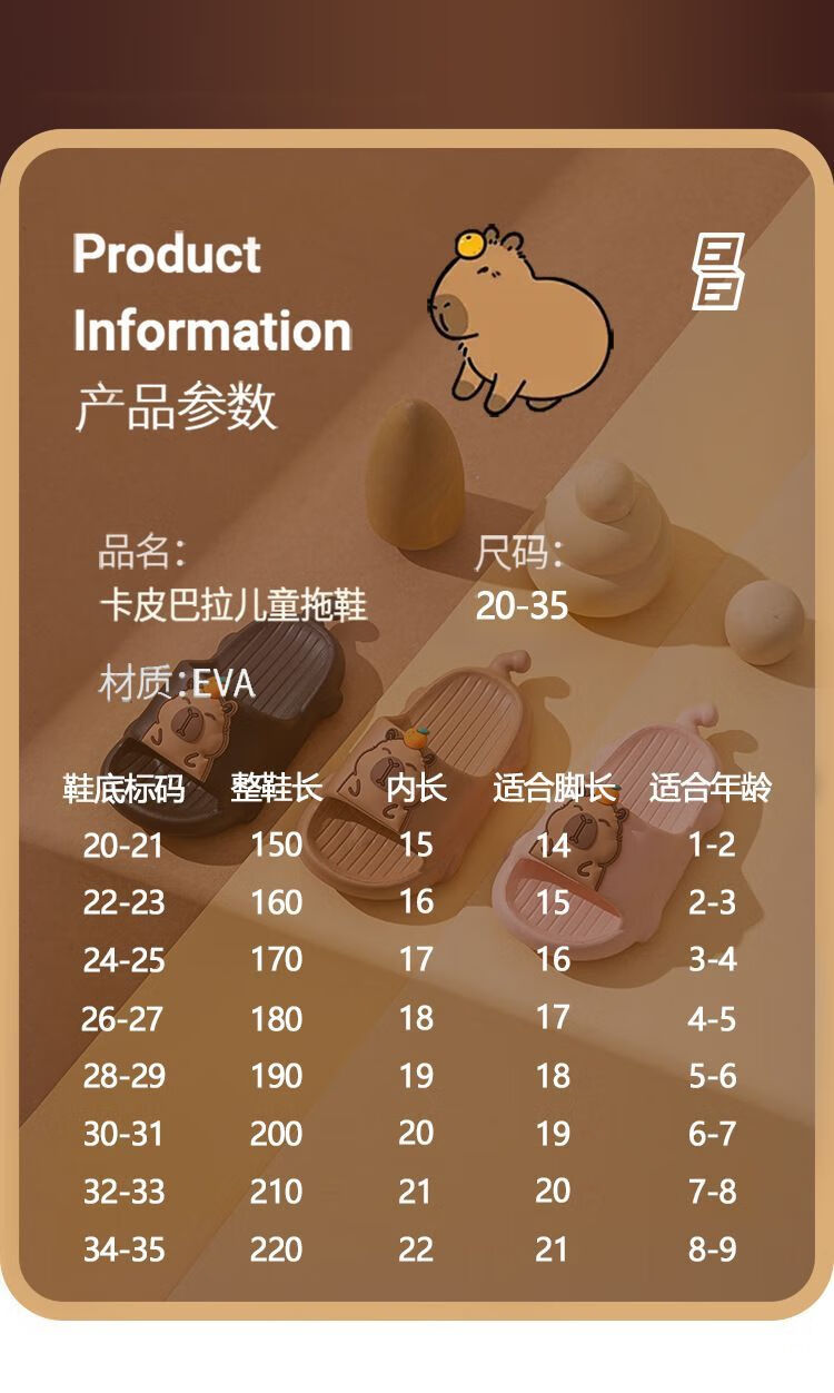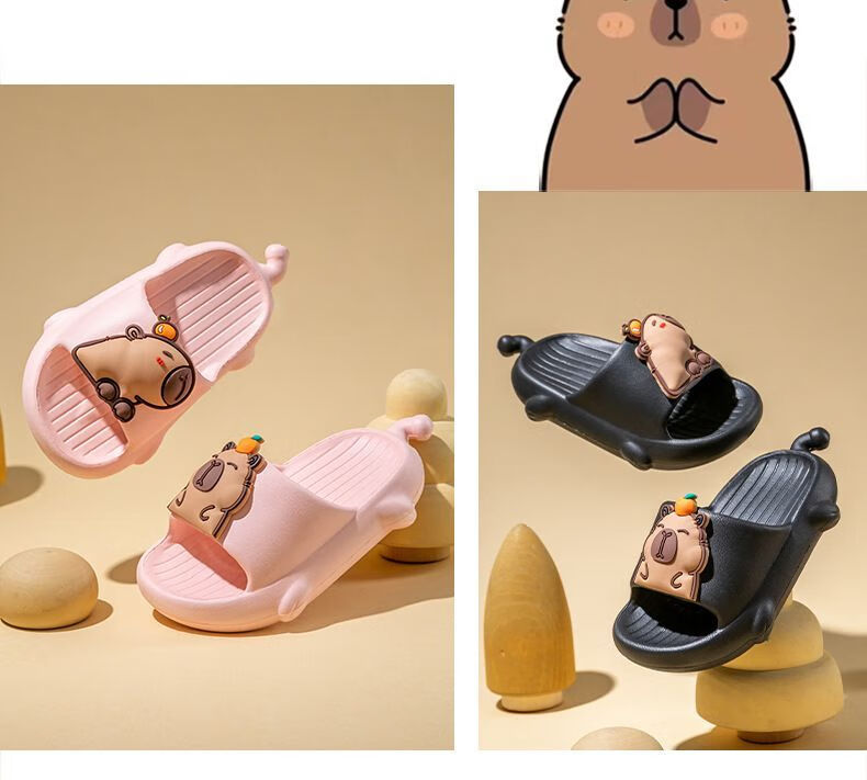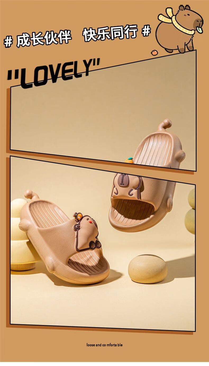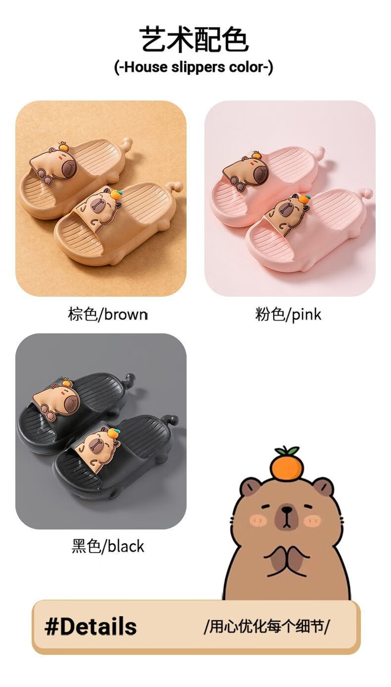 Mao Mao Bear Kapibala Children's Slippers Boys Summer Boys Indoor Home Non-slip Soft Soled Girls Slippers Brown 28-29 Inner Length 19cm Suitable for Feet Length 18cm