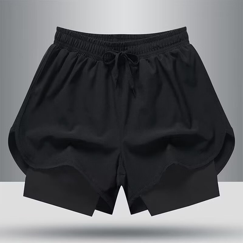 Sports shorts for men's fitness running marathon track and field loose three-quarter pants quick-drying lining anti-exposure double-layer shorts double-layer printed shorts black XL