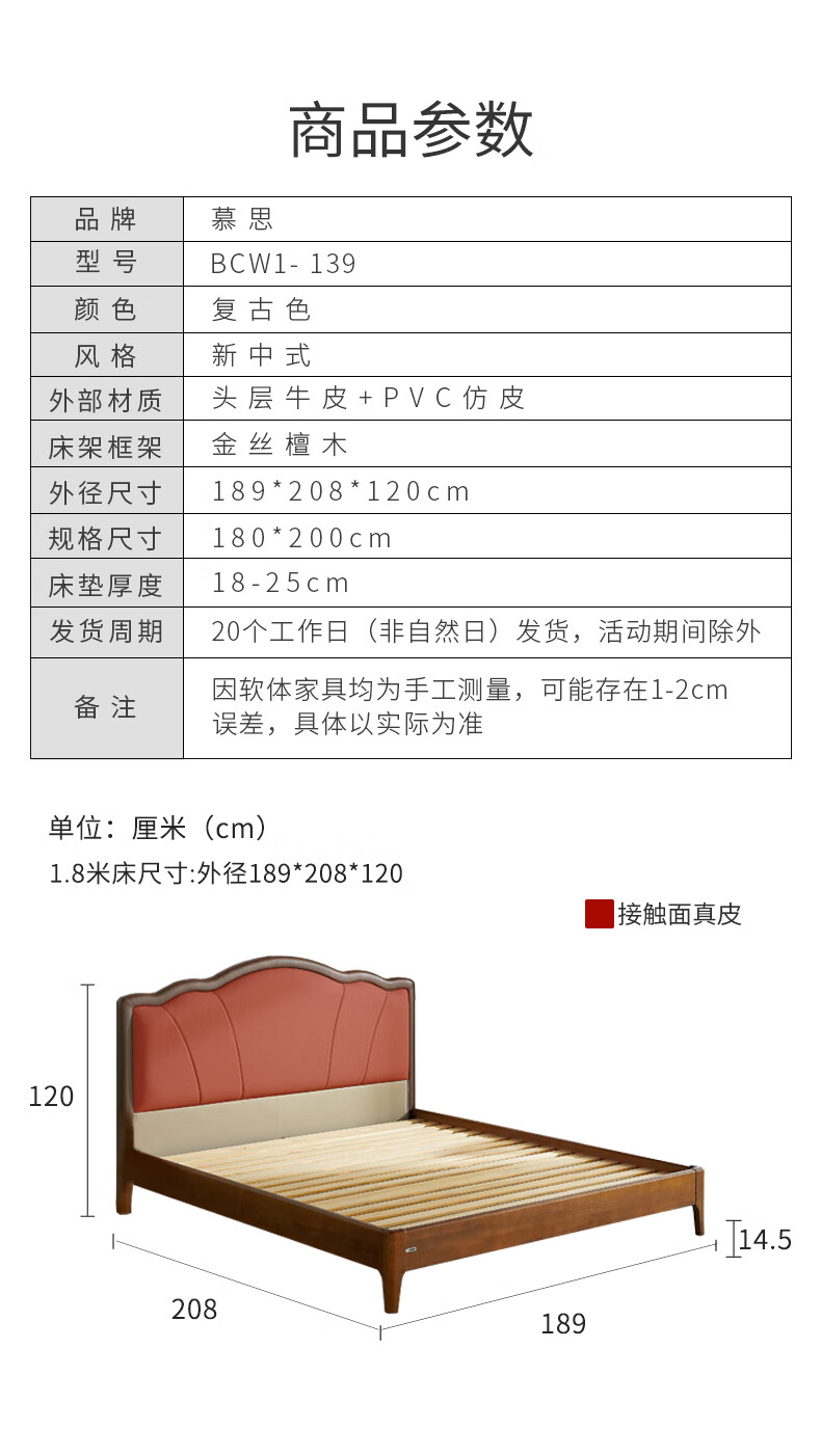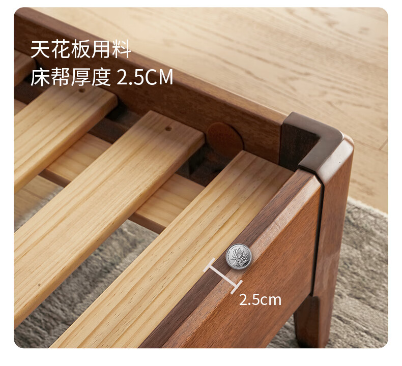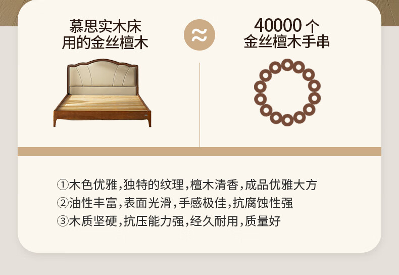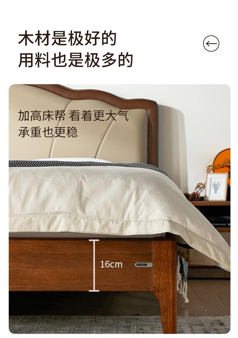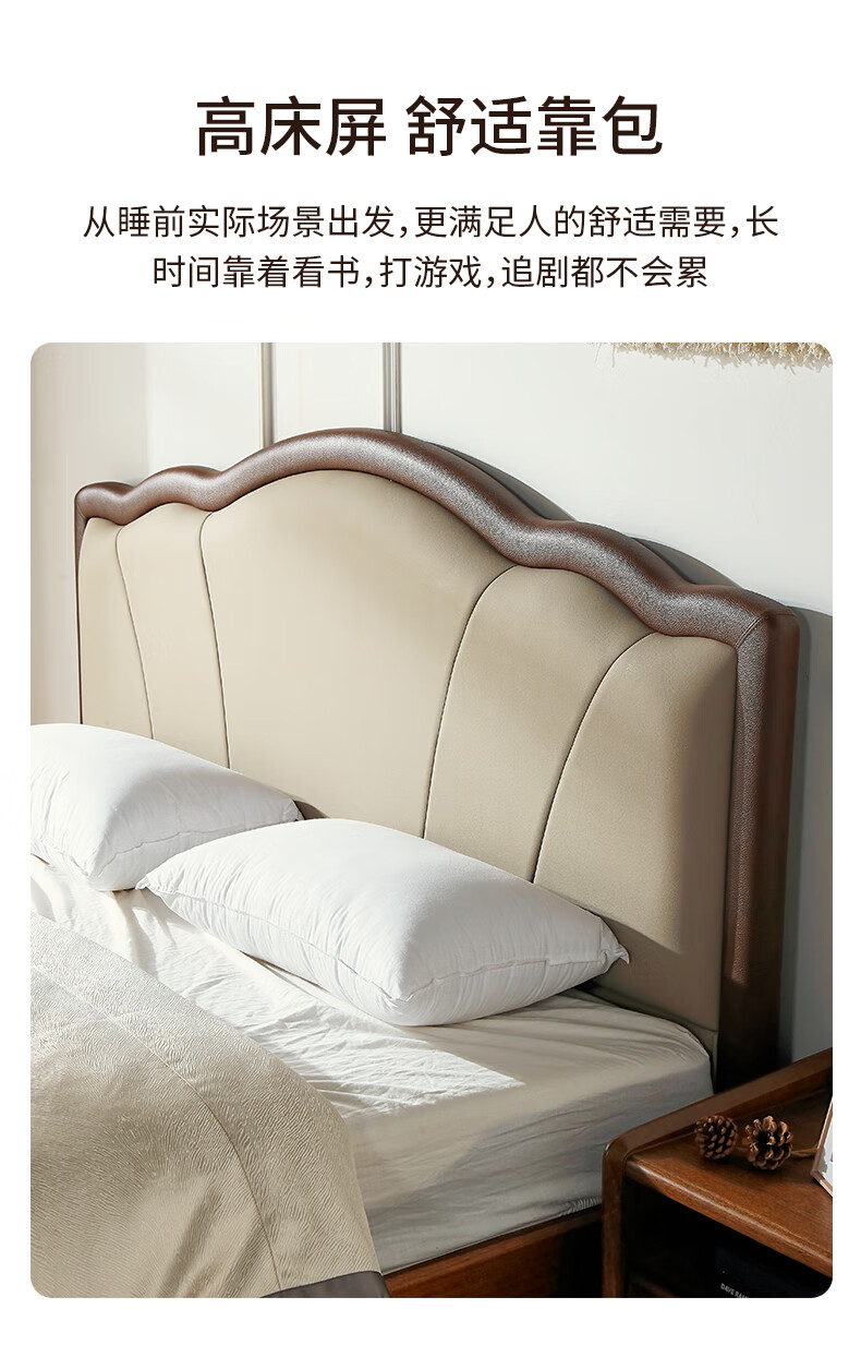 Mousse (de RUCCI) Solid Wood Bed Golden Sandalwood Bed Master Bedroom King Bed Double Bed 1.8 Meters Simple Soft Back Bed Retro Style Crown Bed Full Edge Style (Retro Color)-BCW1-139 (Including Latex Mattress) 1.8*2 Meters