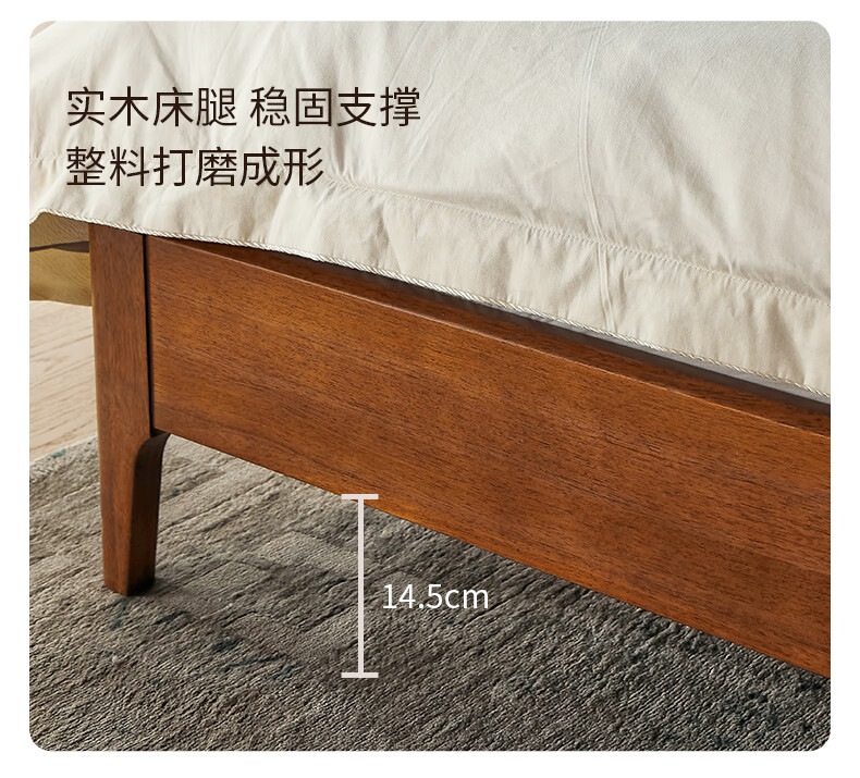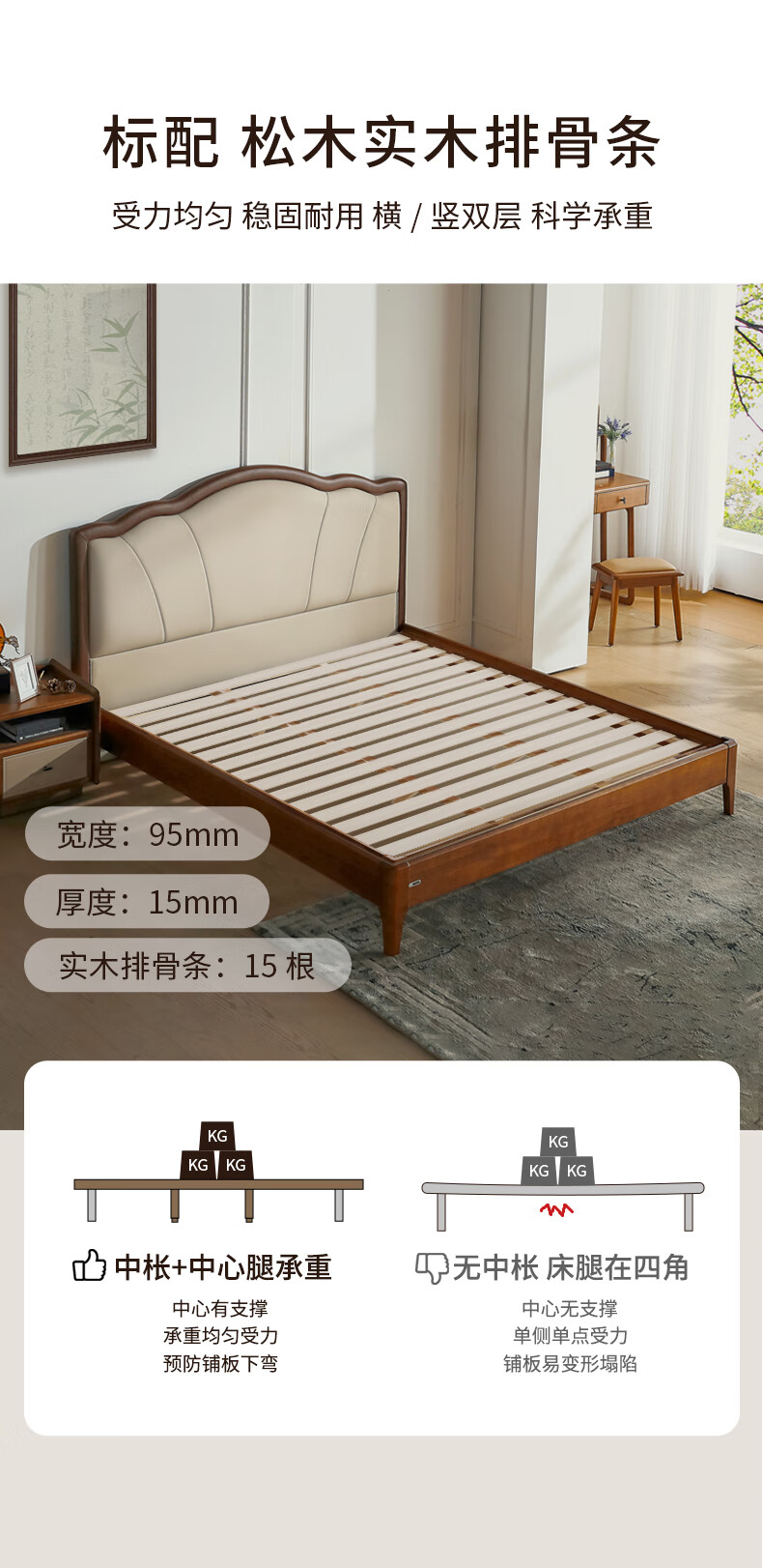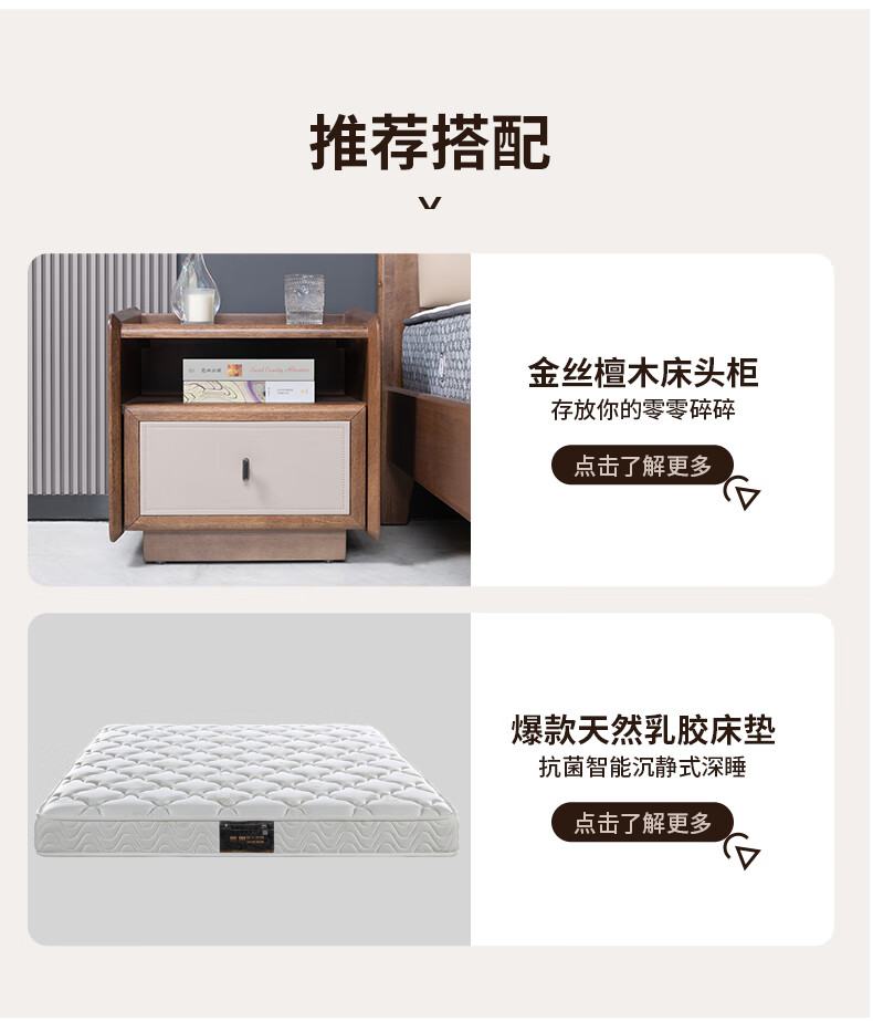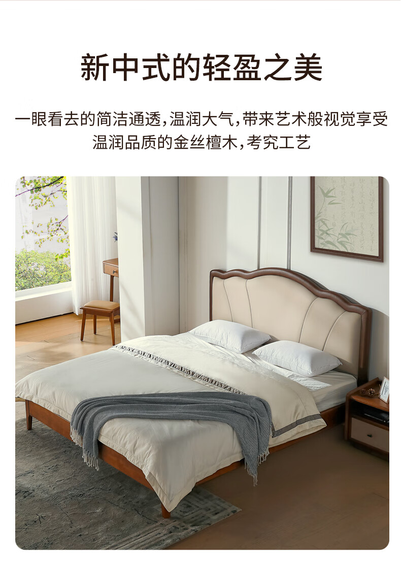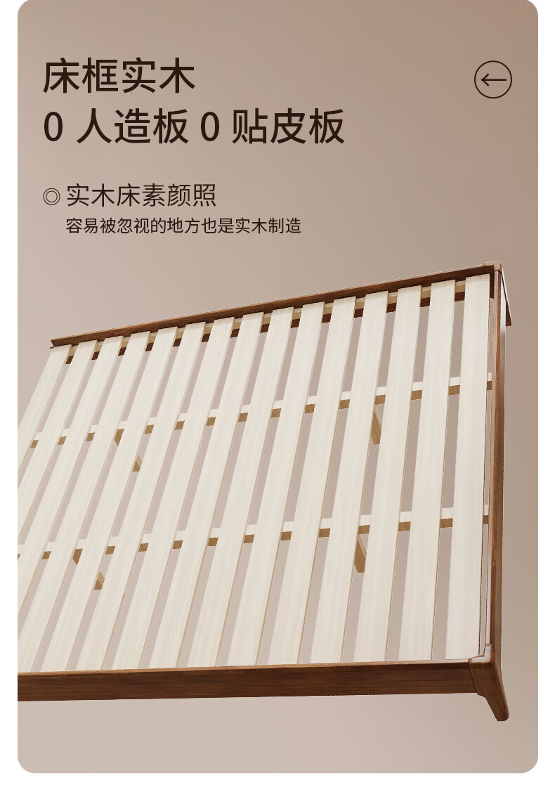 Mousse (de RUCCI) Solid Wood Bed Golden Sandalwood Bed Master Bedroom King Bed Double Bed 1.8 Meters Simple Soft Back Bed Retro Style Crown Bed Full Edge Style (Retro Color)-BCW1-139 (Including Latex Mattress) 1.8*2 Meters