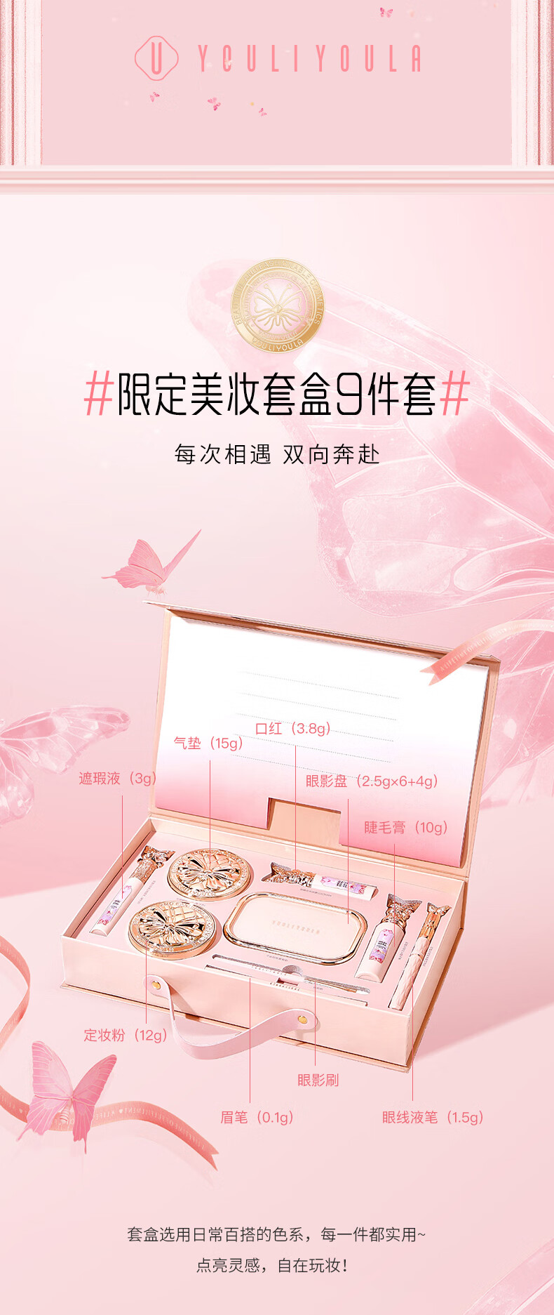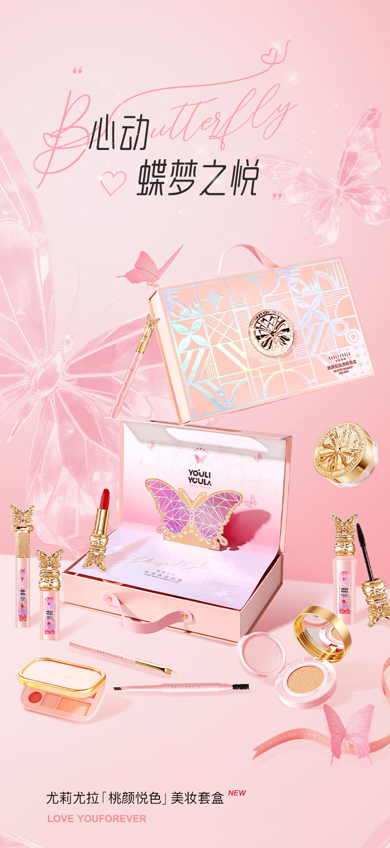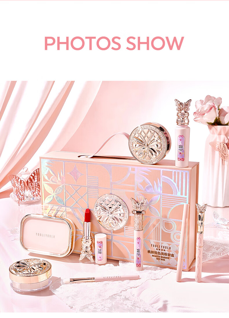 Yuriyola Valentine's Day gift lipstick gift box cosmetics full set makeup set birthday gift for girlfriend, girl, wife, best friend, 9-piece peach-faced beauty makeup set