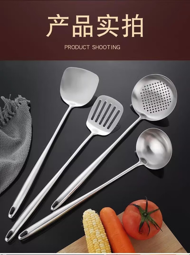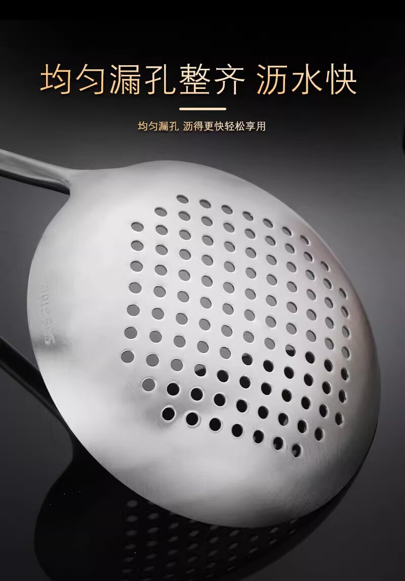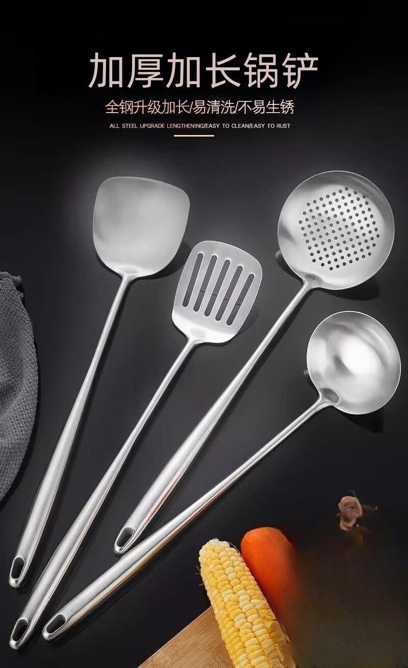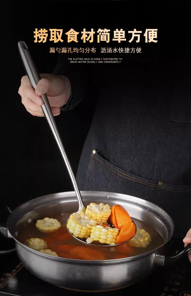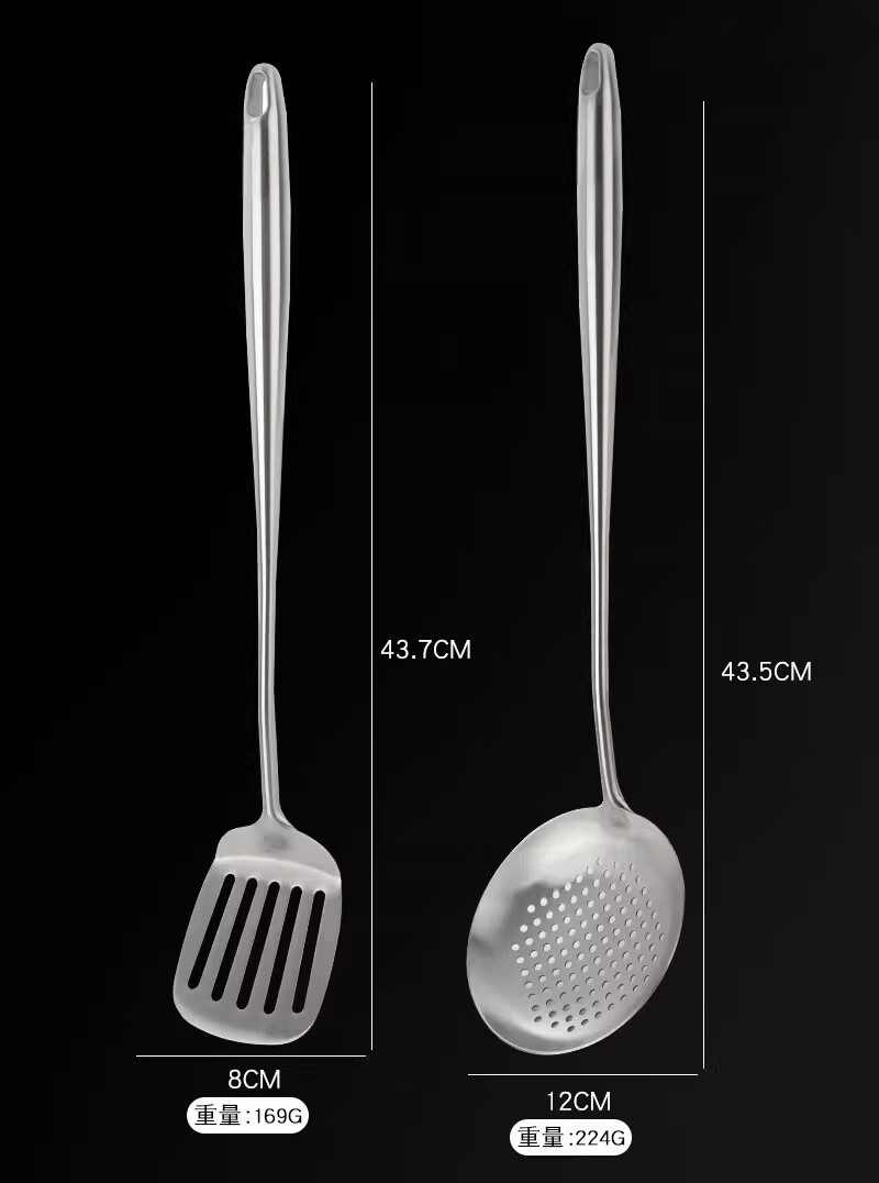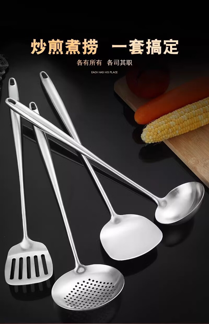 German stainless steel cooking shovel, kitchen anti-scalding frying shovel, spoon, colander, household kitchen utensil set, stainless steel frying shovel, thickened and extended version