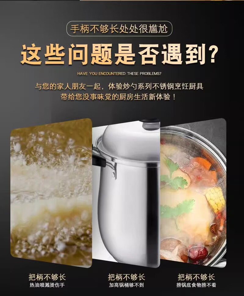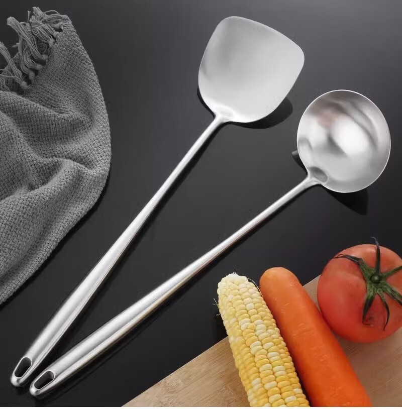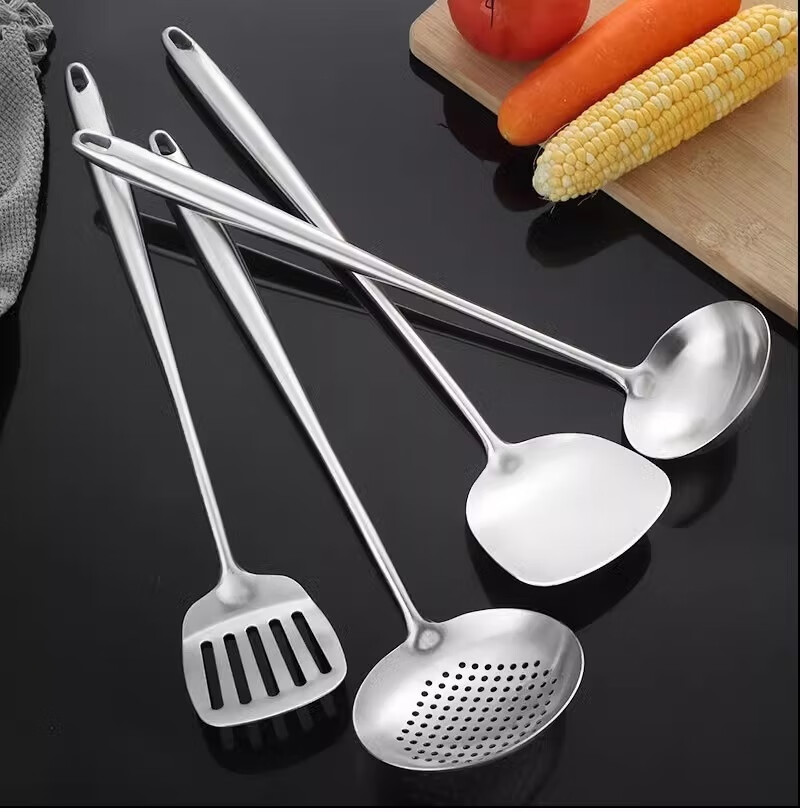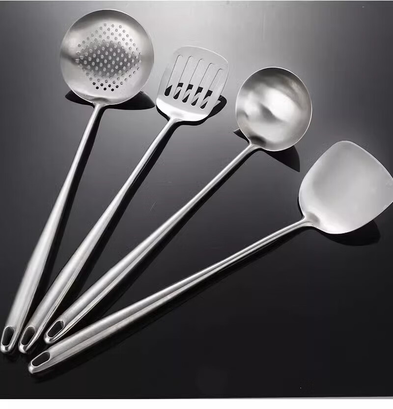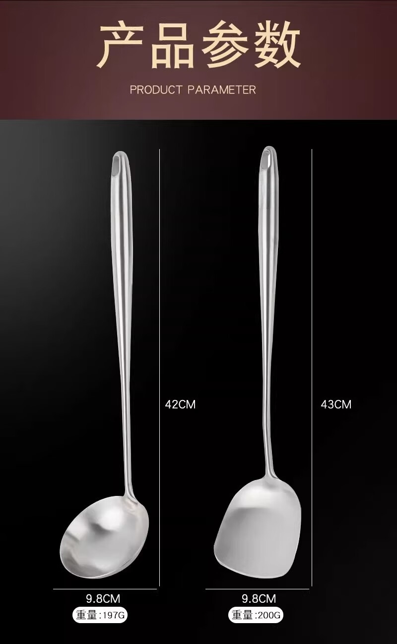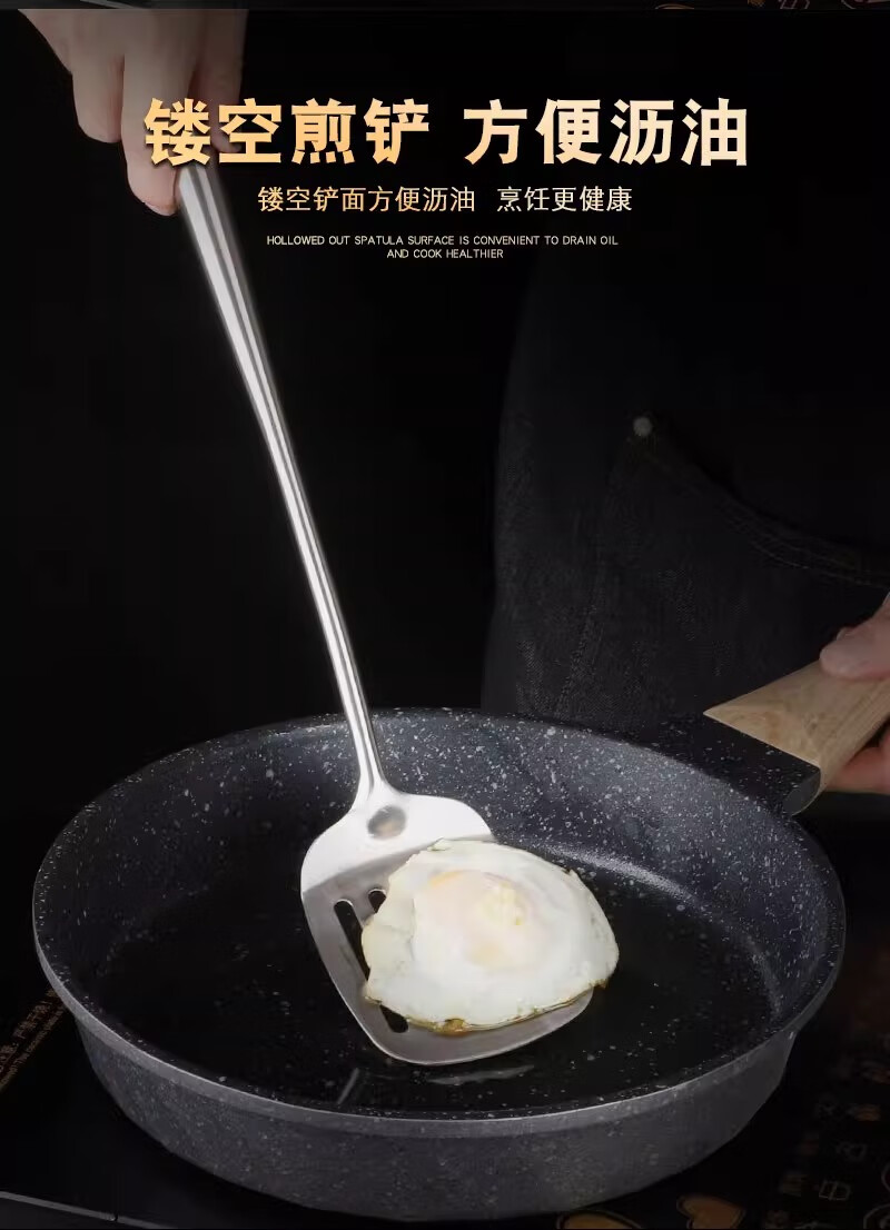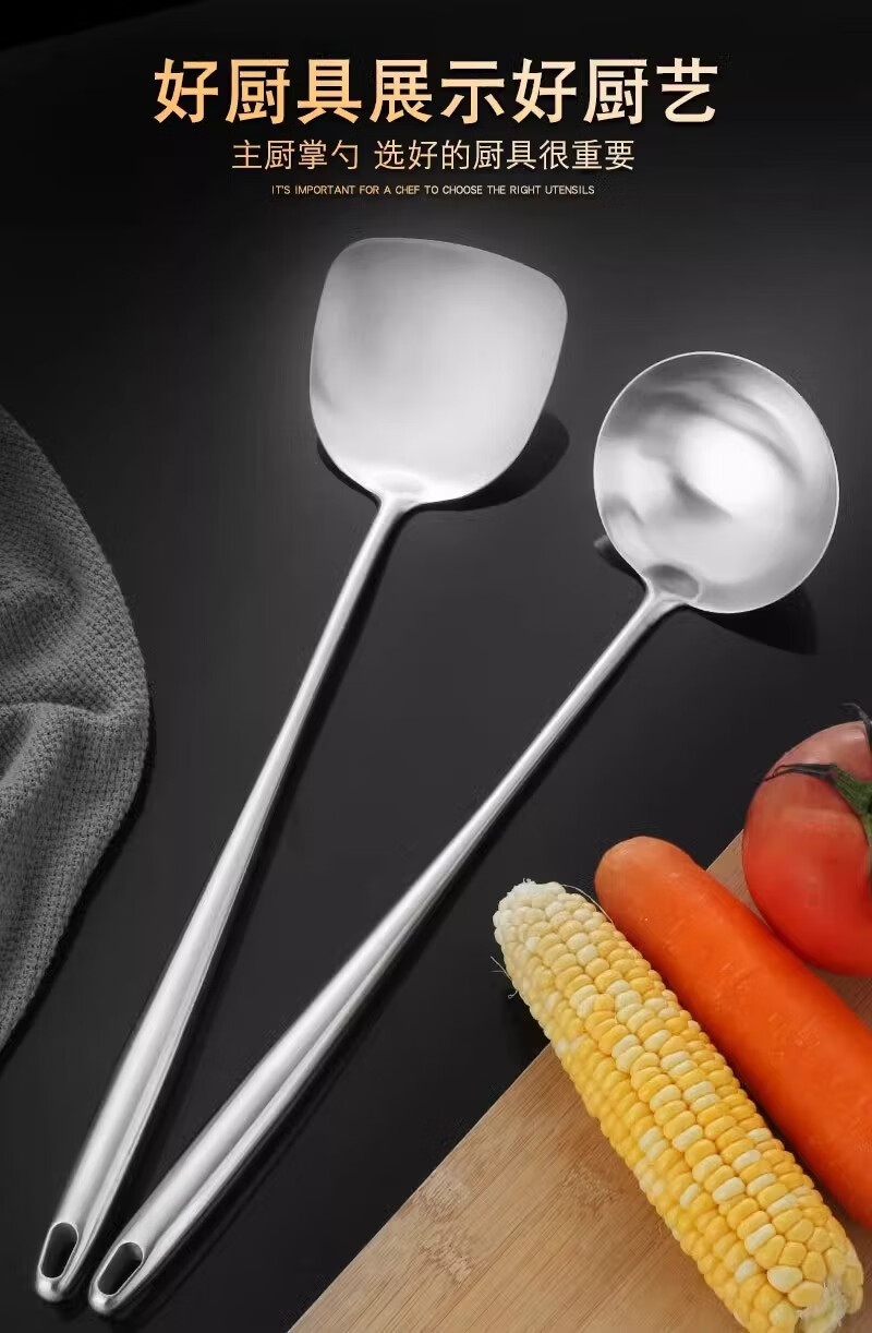 German stainless steel cooking shovel, kitchen anti-scalding frying shovel, spoon, colander, household kitchen utensil set, stainless steel frying shovel, thickened and extended version