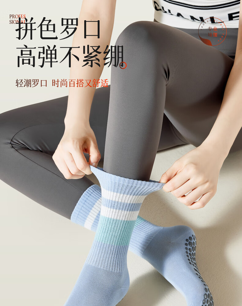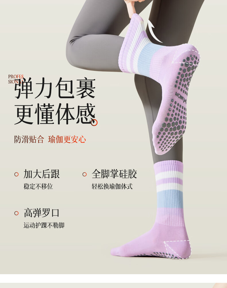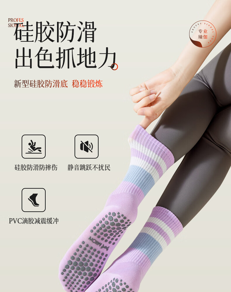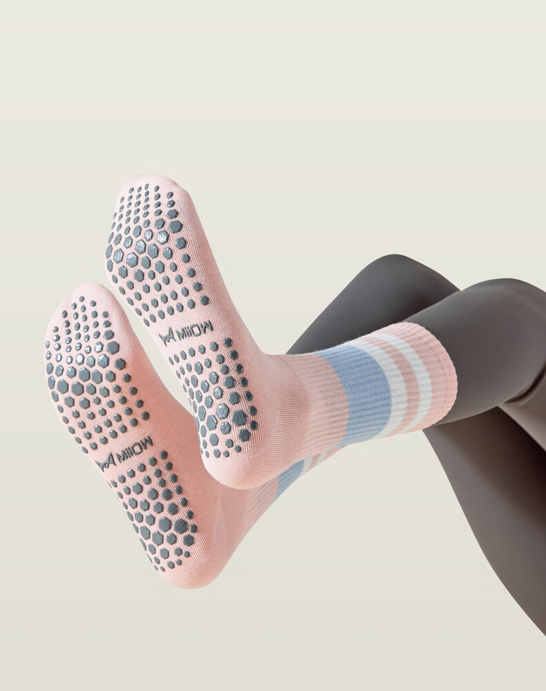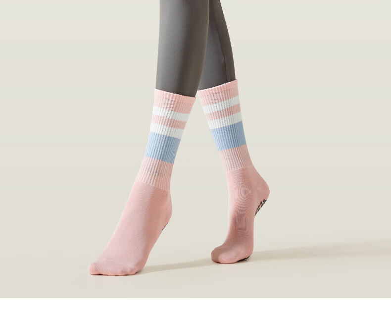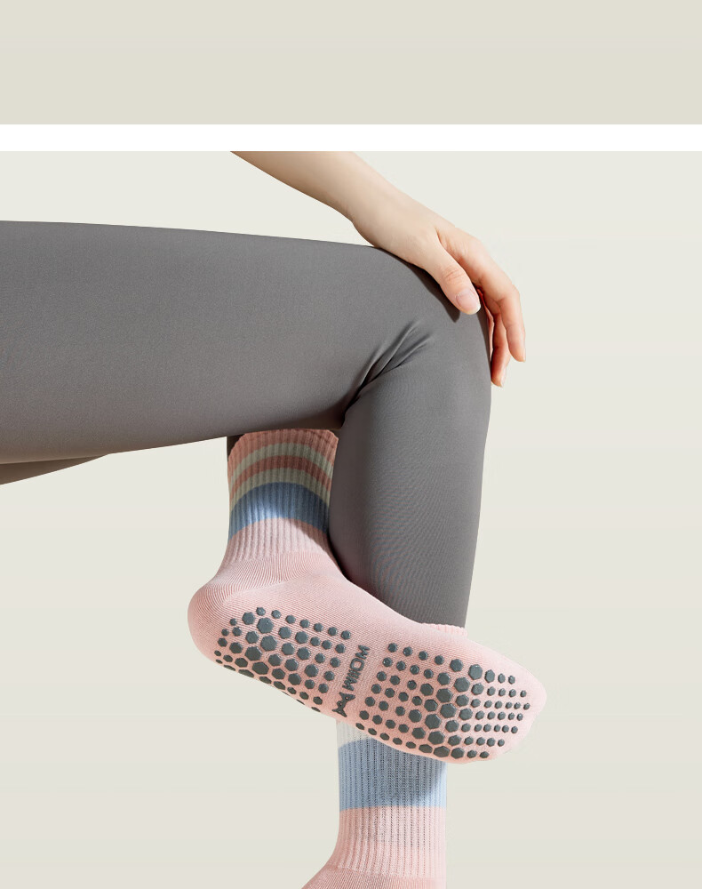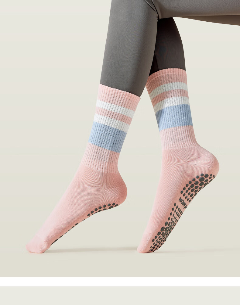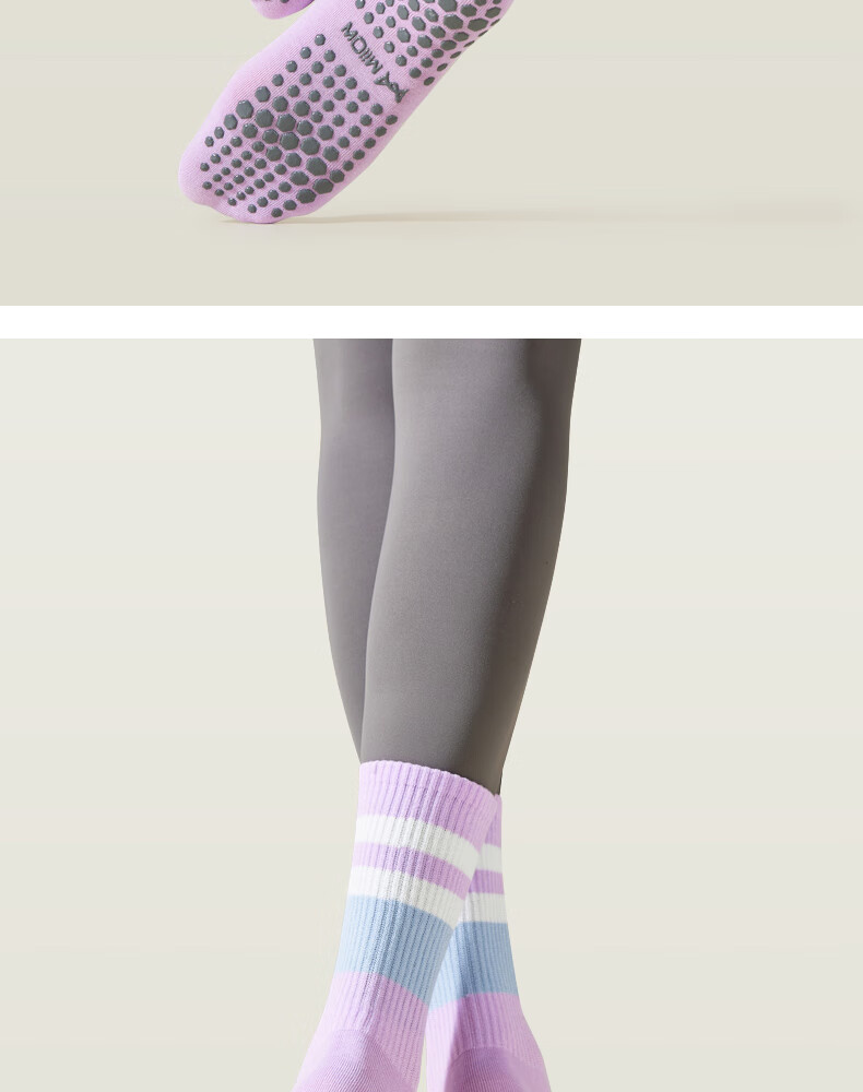 MiiOW Socks Women's Winter Non-Slip Women's Yoga Pilates Thickened Sports Fitness Running Socks Skipping Rope High School High School Non-Slip Socks Pink + Taro Purple 2 Pairs One Size