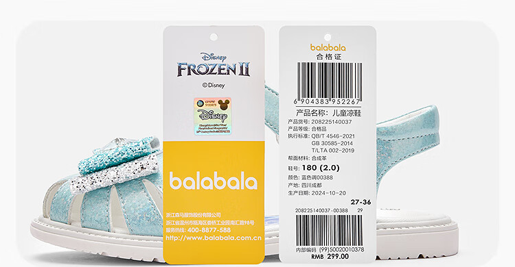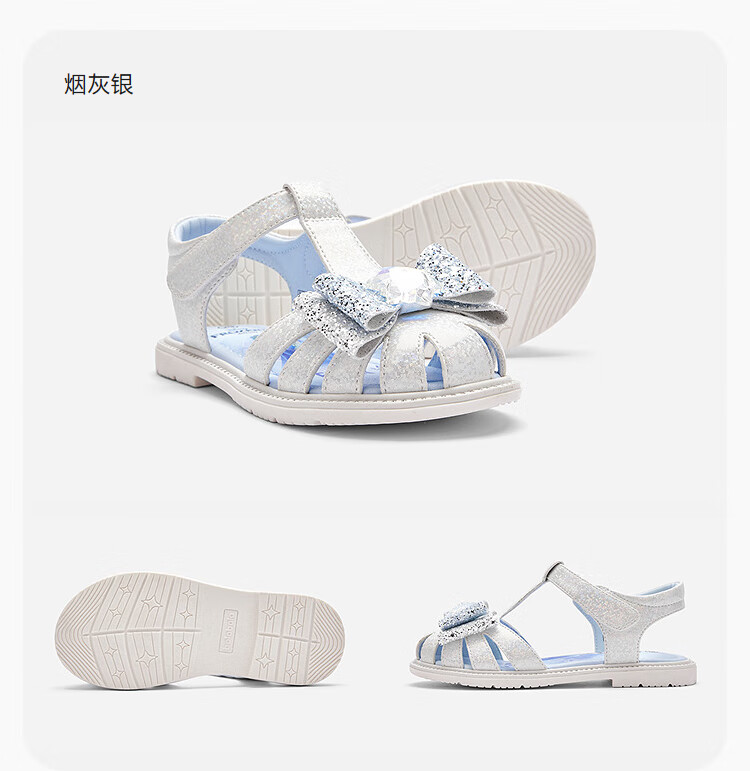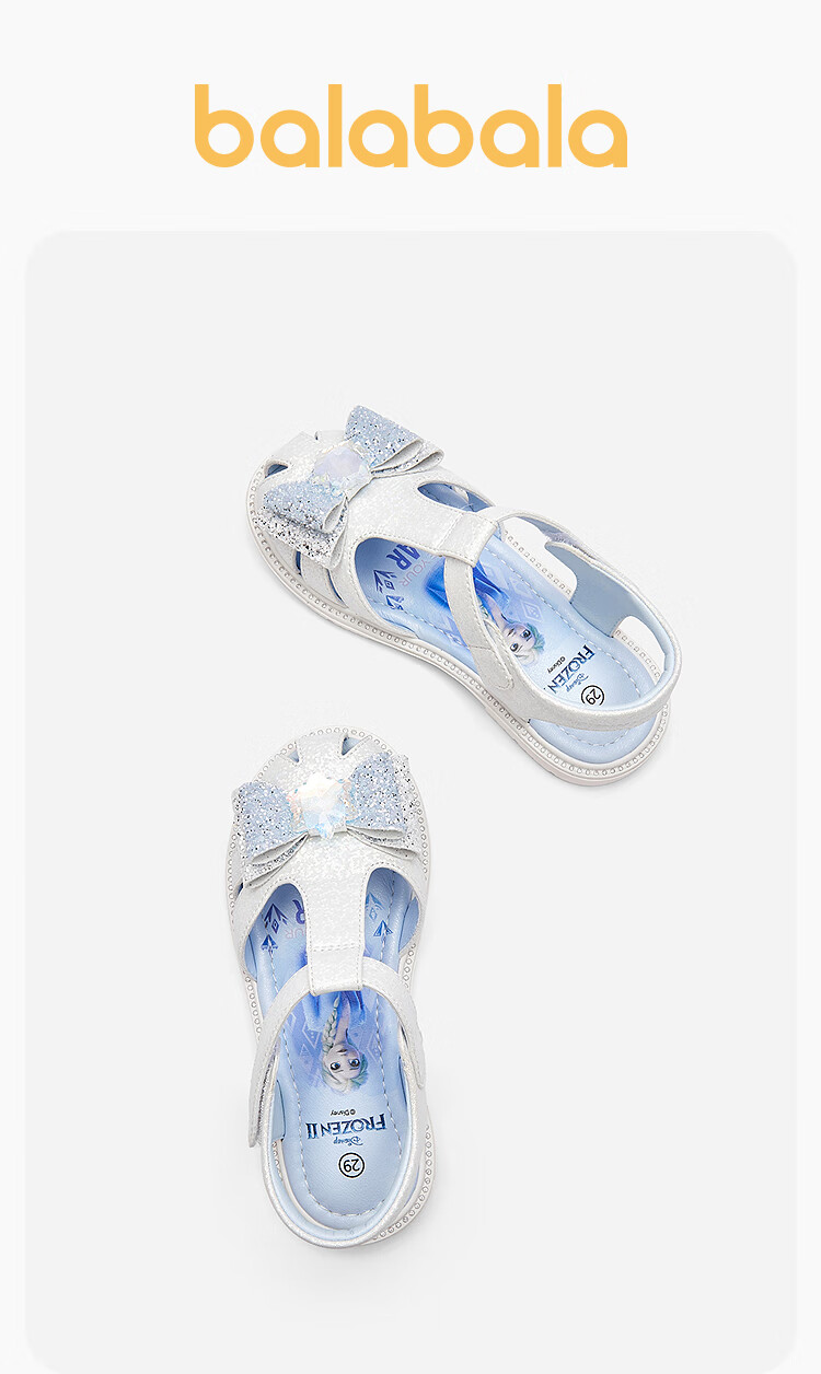 Balabala children's shoes children's princess shoes Elsa sandals girls 2025 summer new sweet ash silver 20301 29