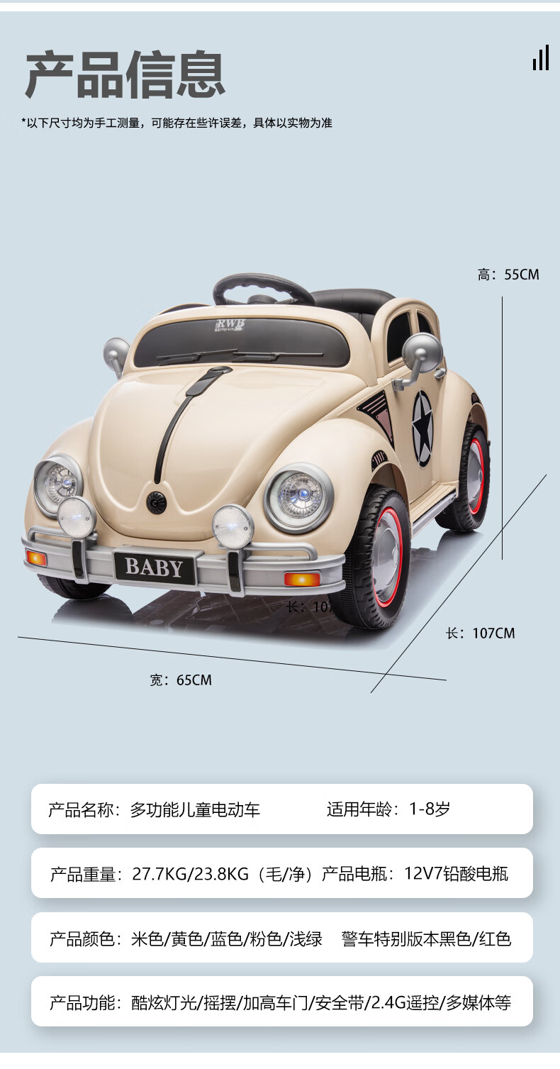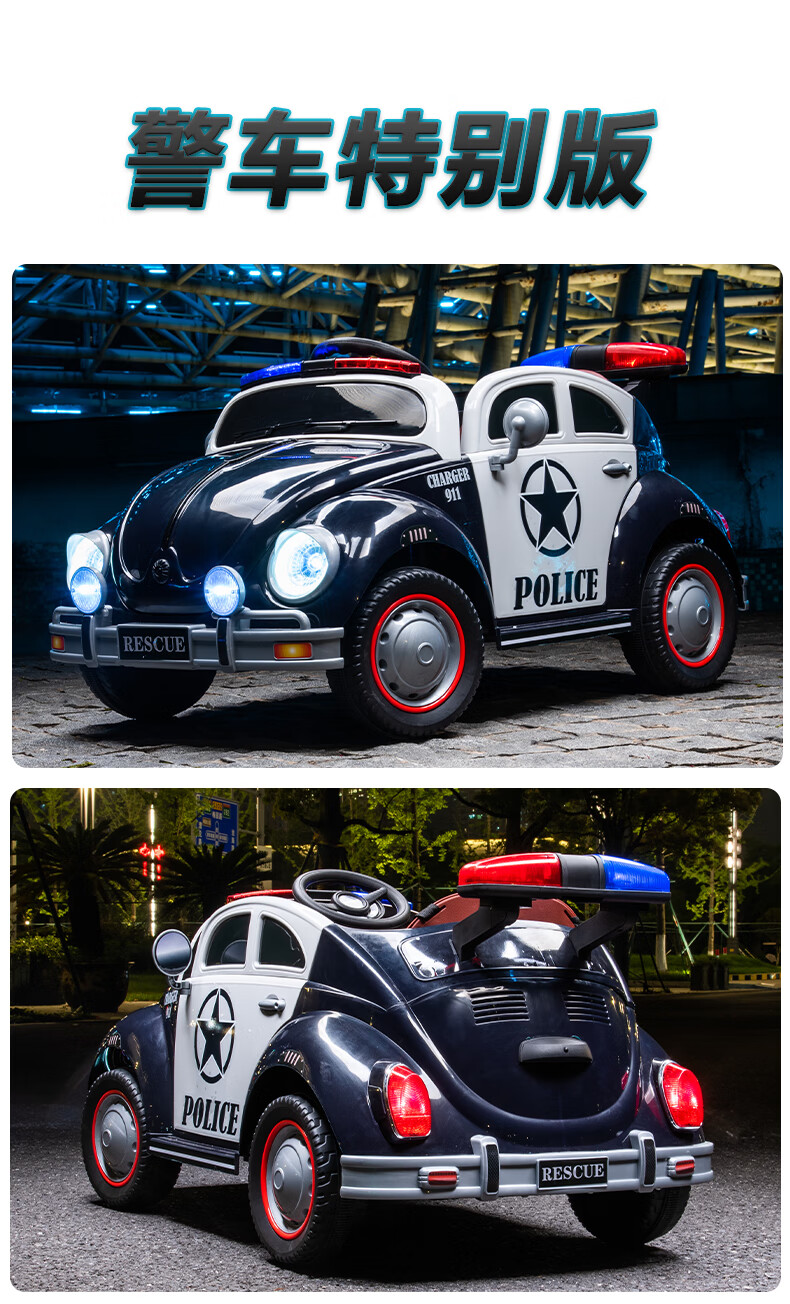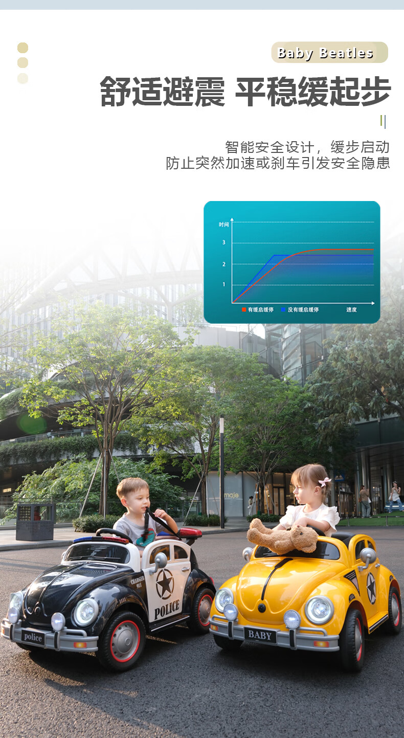 Xiaogazi children's electric car for boys and girls that can sit on a person and can be controlled by a remote control car retro Beetle children's toy police car gift pink + 12V7A + four-wheel drive + leather seat