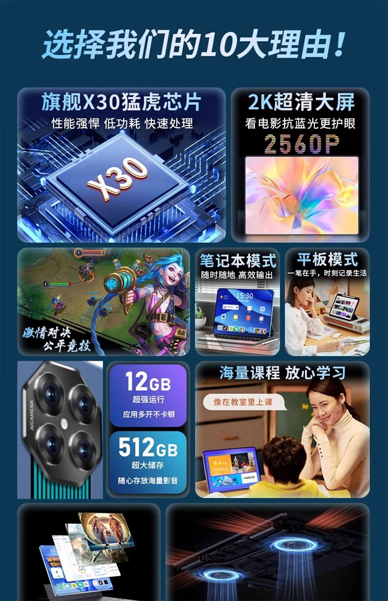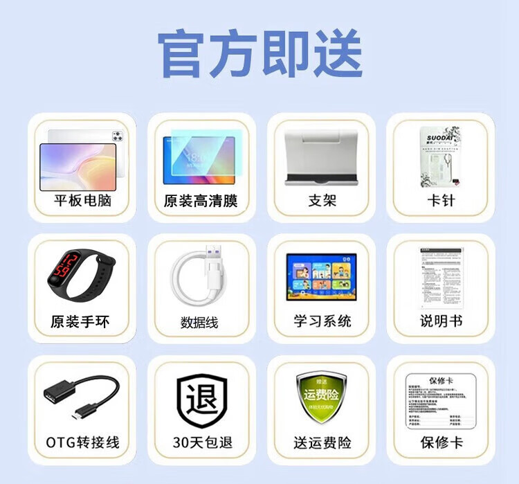 Brand new unopened learning machine online course 16G+1TB large memory tablet computer full Netcom 5G high-definition eye protection screen game office Android smartphone titanium sky blue free leather case 16G+1TB brand new unopened+full Netcom