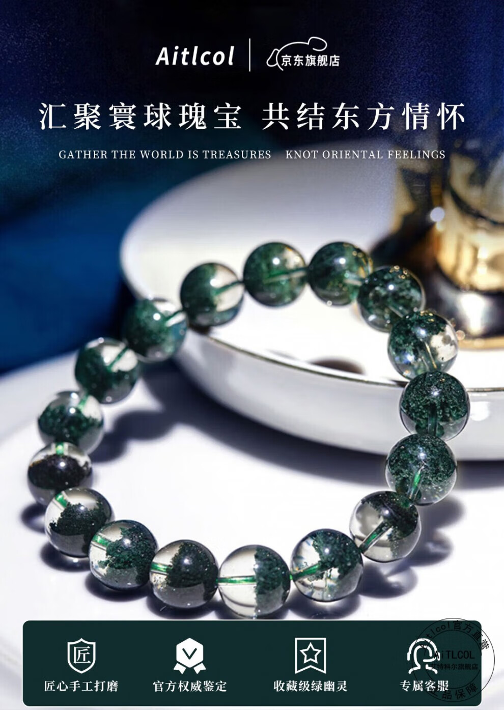 Aitkel Natural Brazilian Green Ghost Cornucopia Bracelet Transfer Beads Birthday 520 Valentine's Day Gifts for Boy and Girl Friends Boutique Grade Starry Thousand Layers Green Ghost-7mm