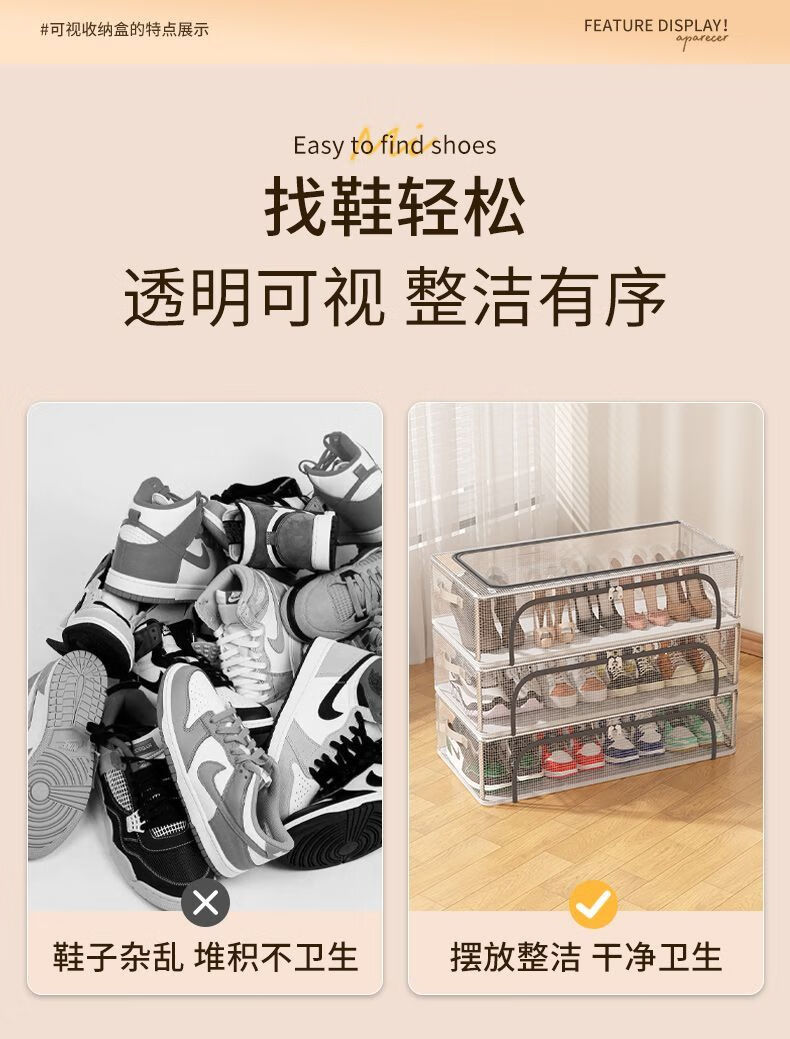 Kaximu installation-free shoe box storage multi-functional dust-proof transparent drawer shoe cabinet artifact space organization folding rack Upgraded double door model丨Transparent white 4# 60*30* Dust-proof and moisture-proof Shoe bag丨No steel frame + 1