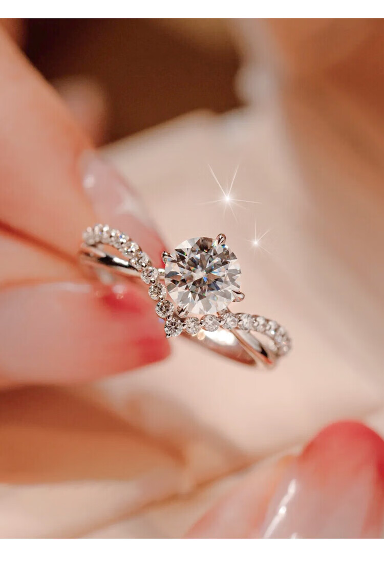 Pt950 platinum crowns love moissanite diamond ring diamond ring female engagement proposal wedding ring closed ring light luxury model crowns love 50 points live mouth