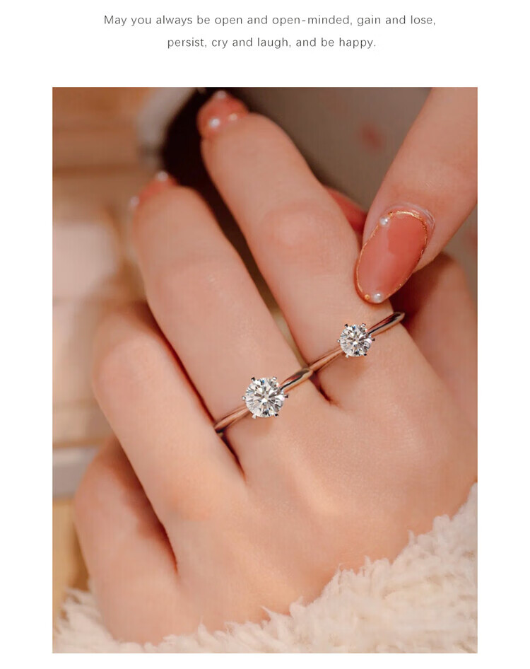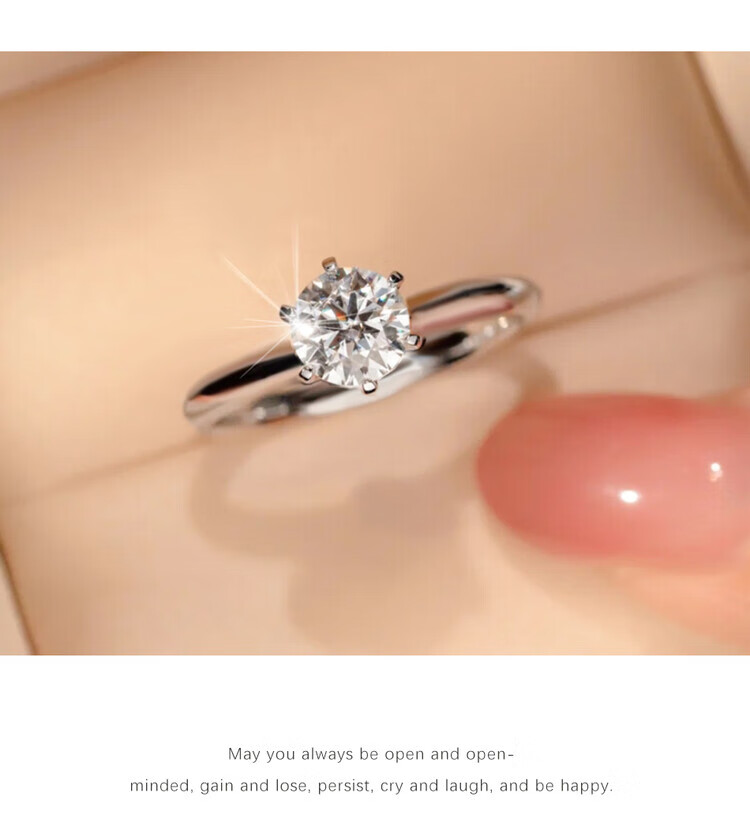 Pt950 platinum 1 carat moissanite diamond ring women's diamond ring for wedding ceremony as a birthday gift for girlfriend Light luxury model classic six-claw main diamond 50 points live