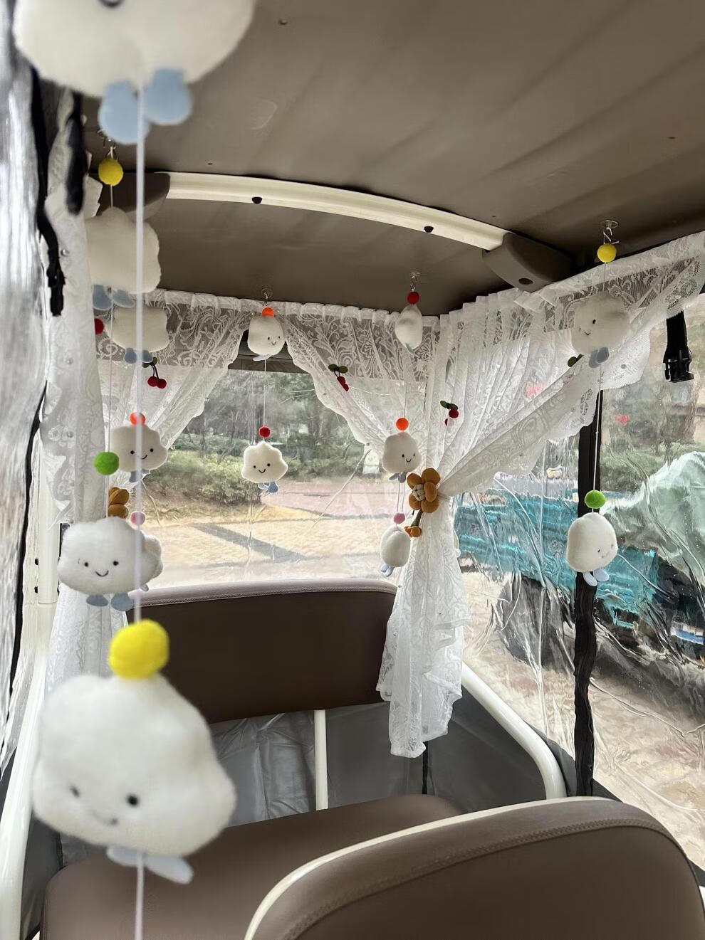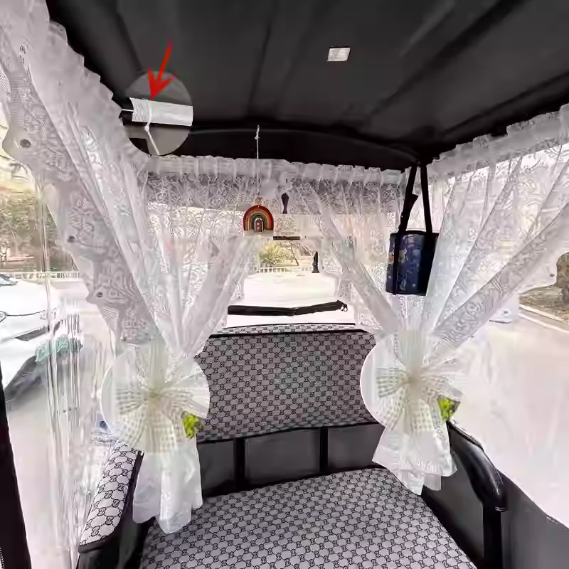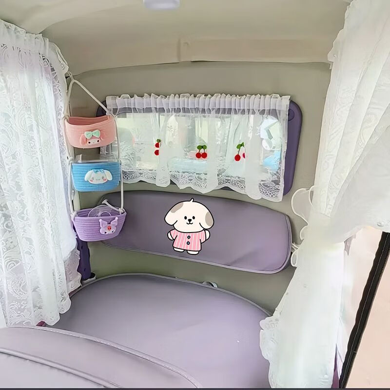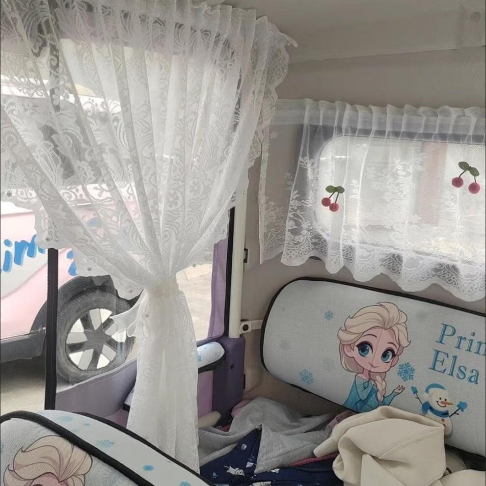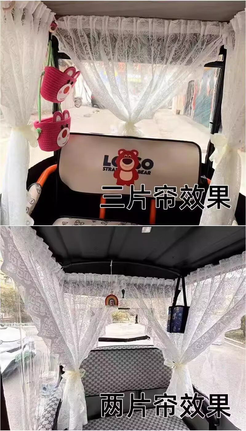 Zhuanying electric tricycle privacy gauze curtain princess style sunscreen curtain Velcro self-adhesive four-wheeler interior curtain sunshade white pearl curtain two long and one short 3 pieces free of charge