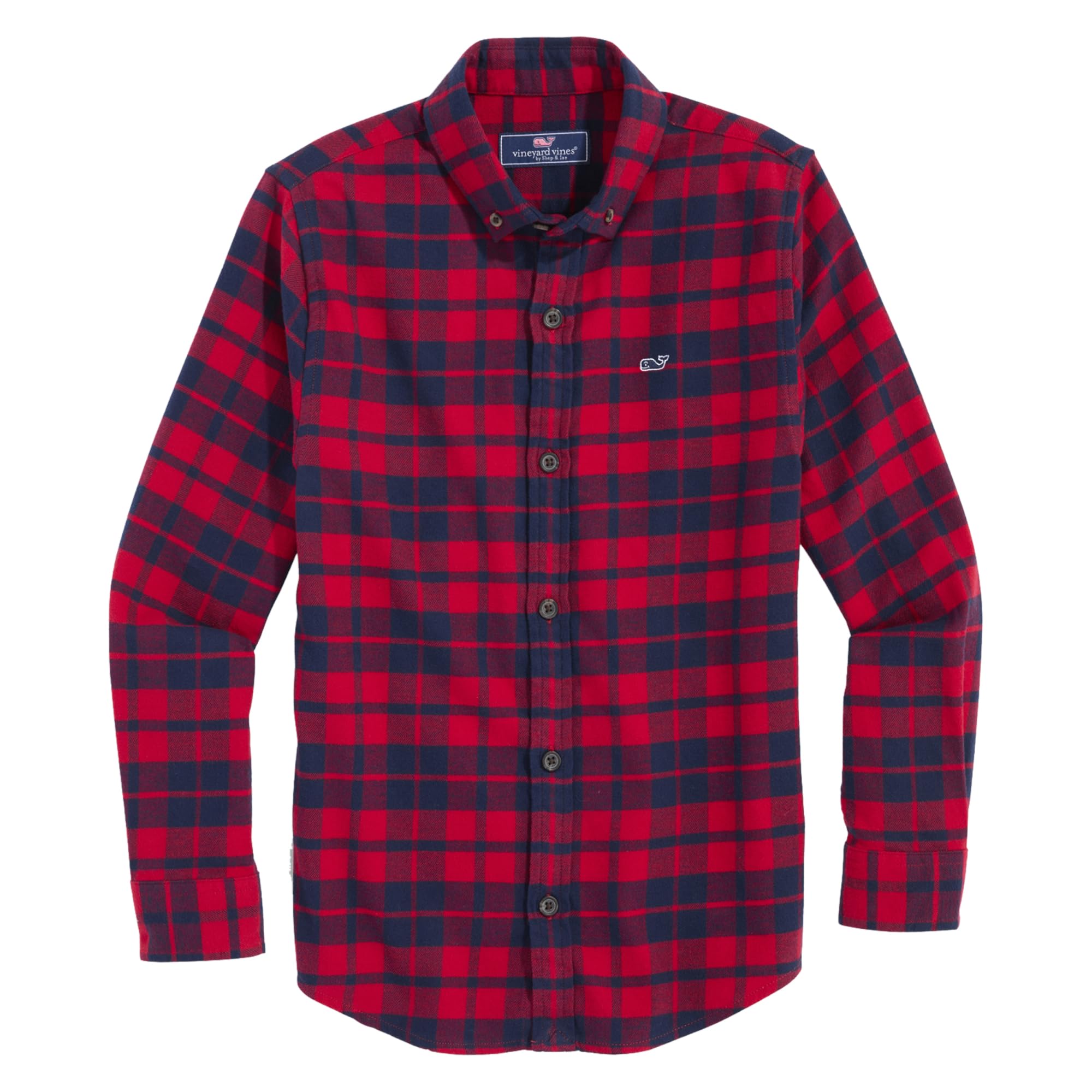 Vineyard vines boys' flannel shirt soft elastic plaid pattern children's casual top comfortable and warm red velvet 2T