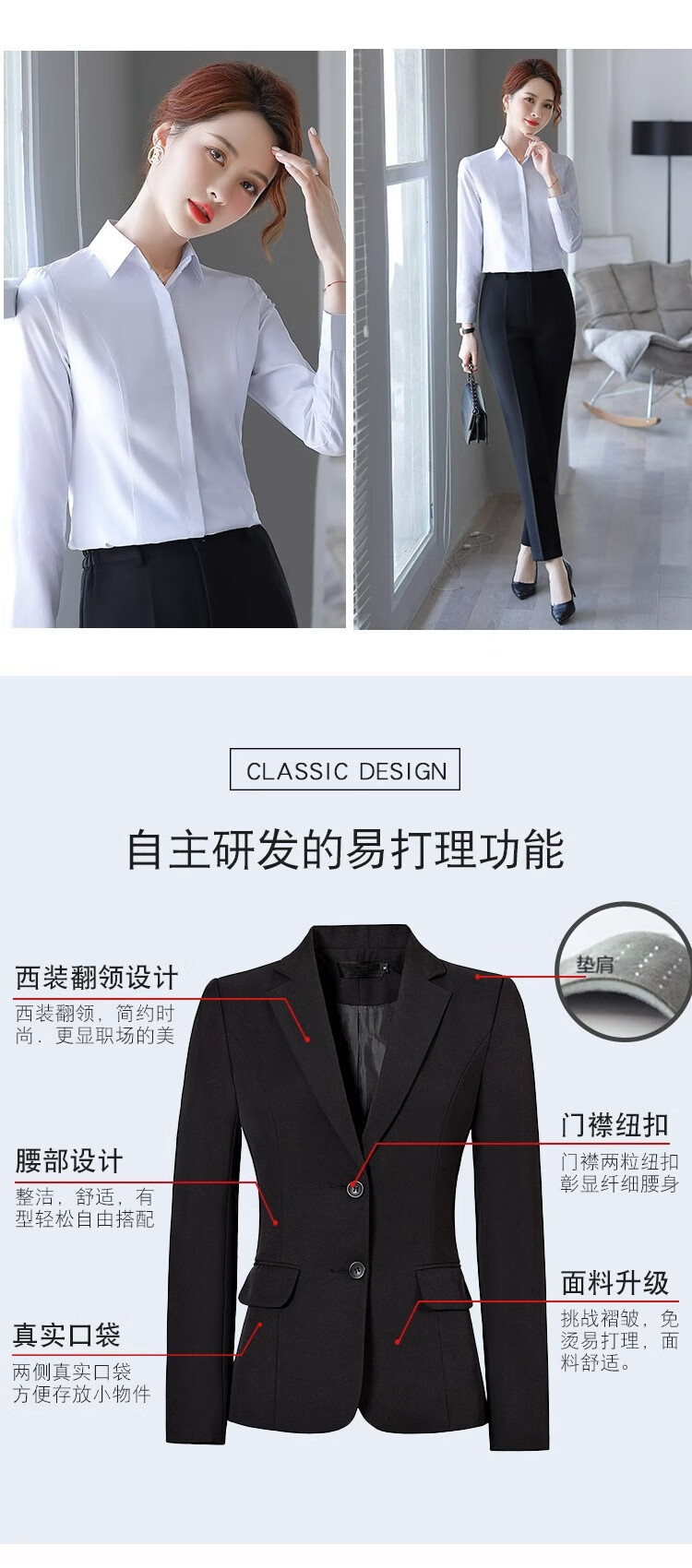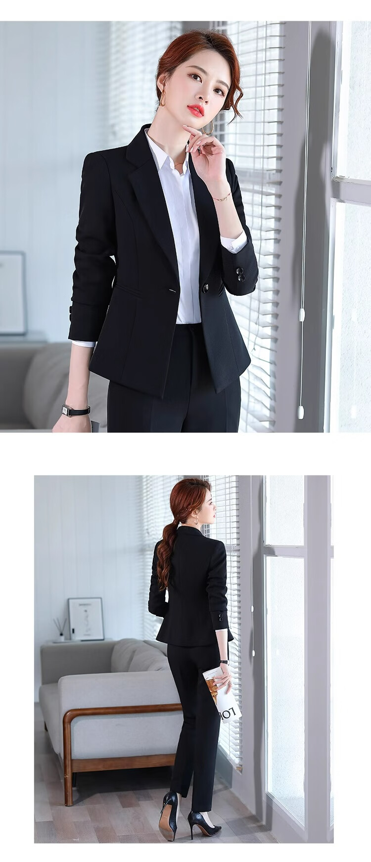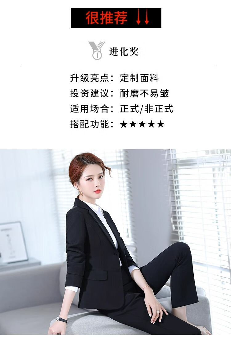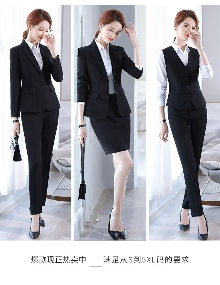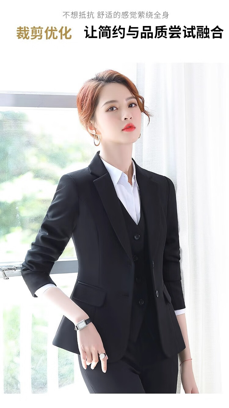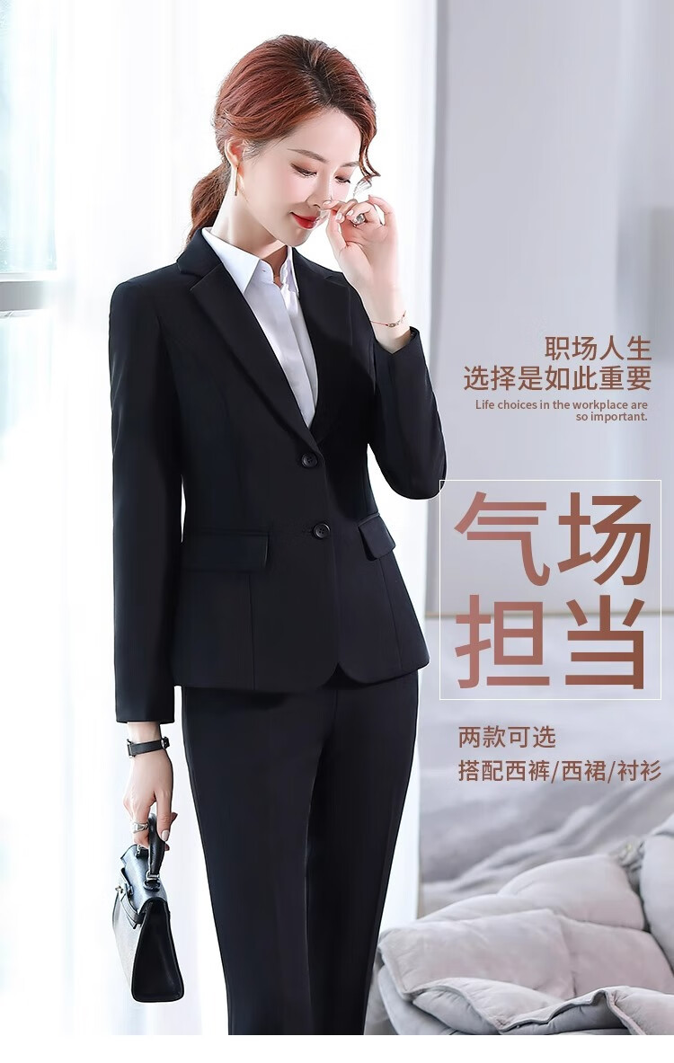 Suit Suit Women's Business Wear Formal 2025 Spring New Casual Temperament Work Wear Suit Suit Black Jacket + Trousers (502) XL Recommended 110-120Jin Jin equals 0.5 kg