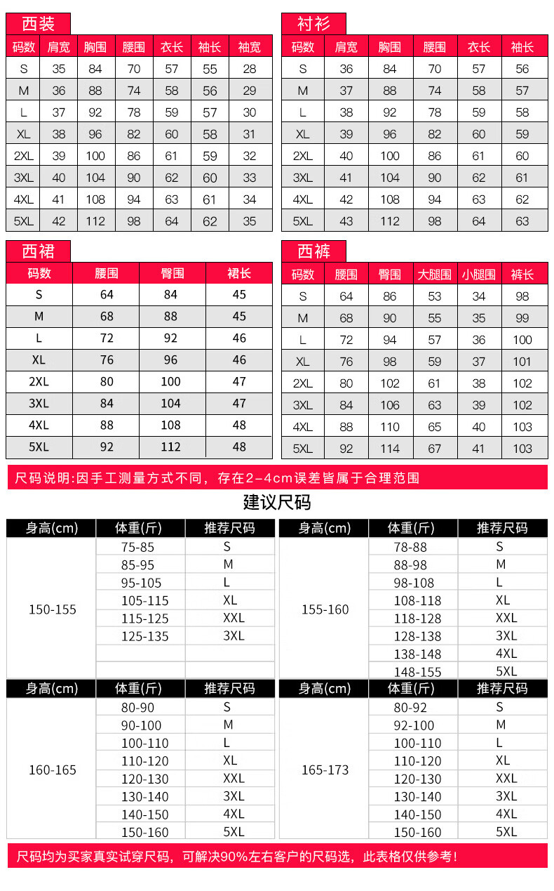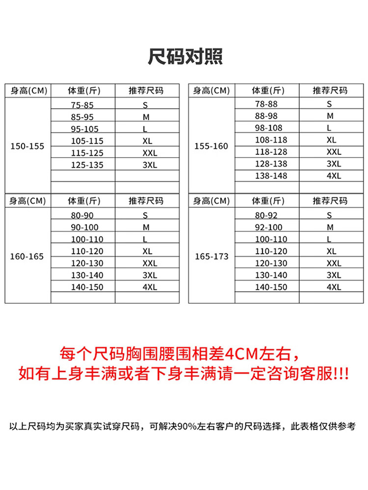 China (cm) 160-165/84-86 165-170 / 88-90 167-172 / 92-96 168-173 / 98-102 170-176 / 106-110