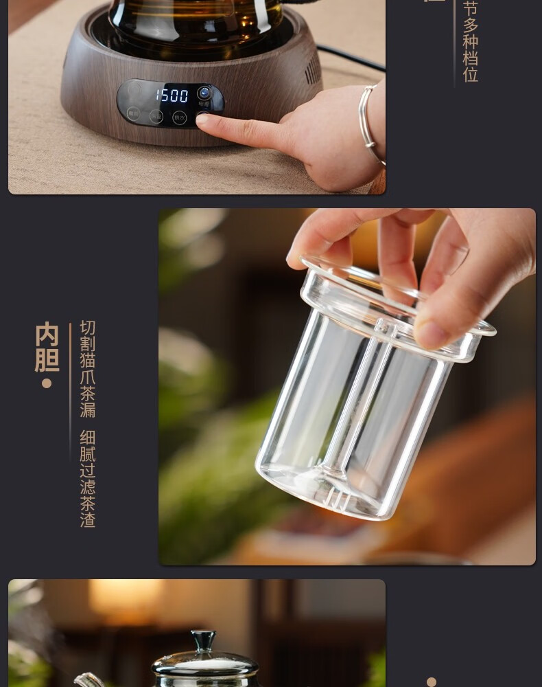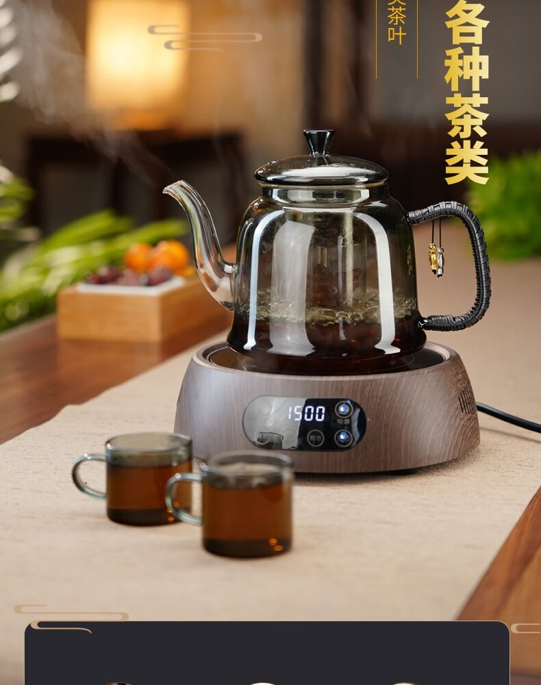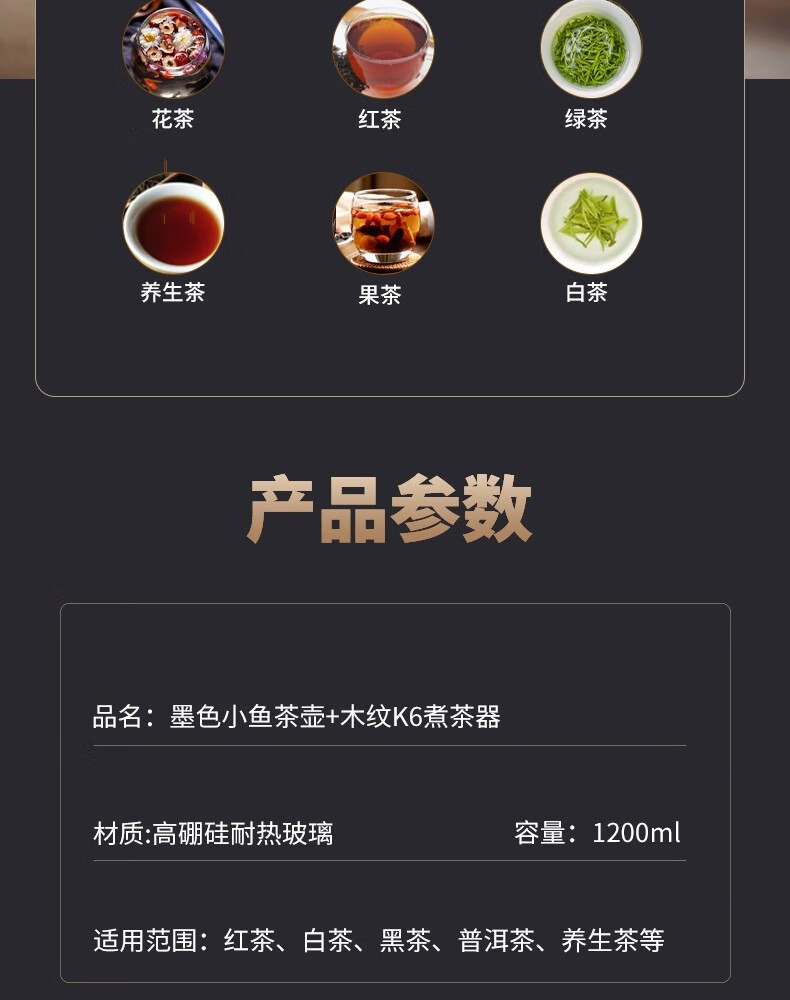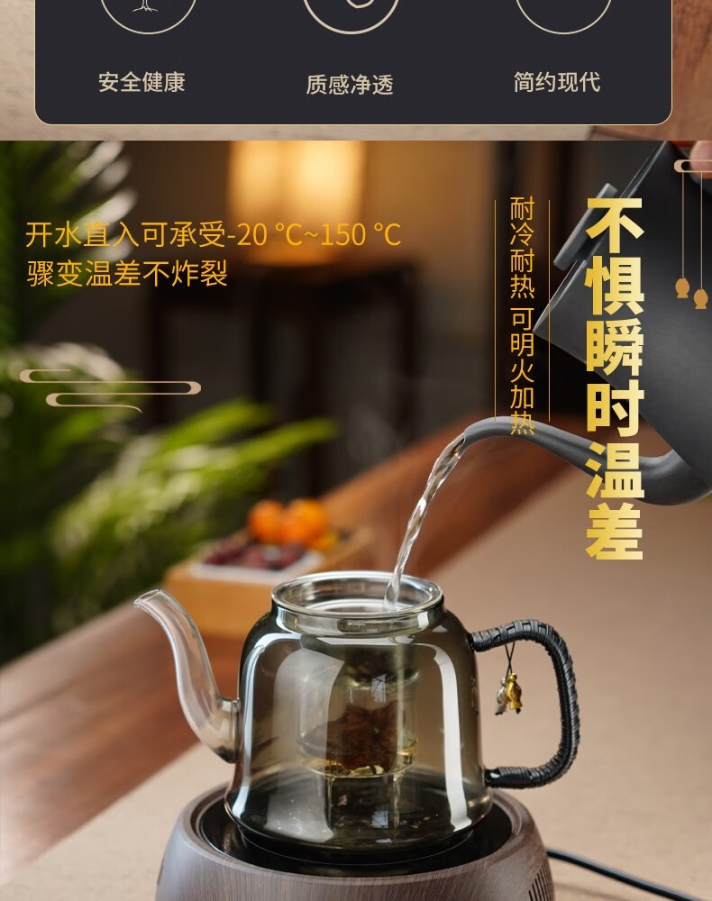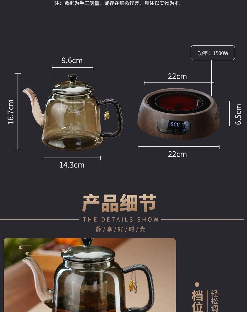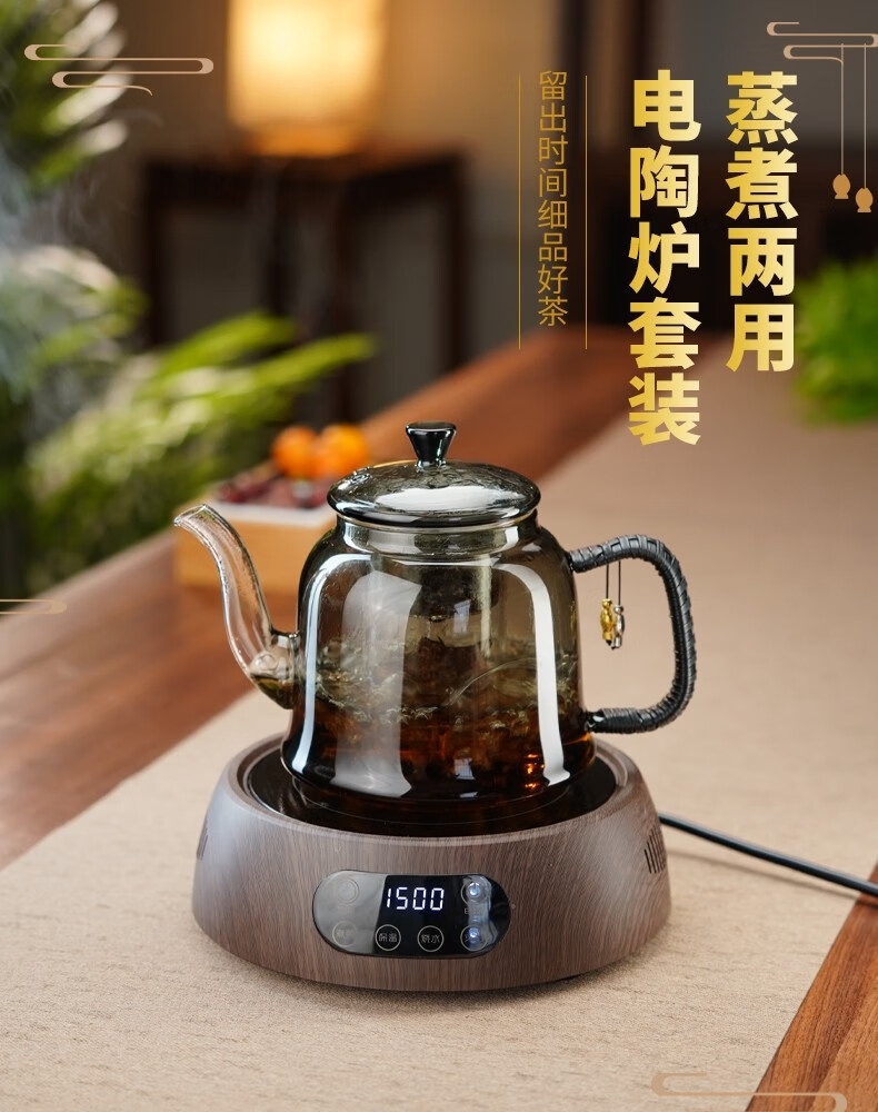 Full heat-resistant glass cooking one-piece lifting kettle tea kettle electric ceramic stove tea set around the stove to make tea household kung fu tea set ink Pisces kettle gray + Kangmi wood grain ceramic stove
