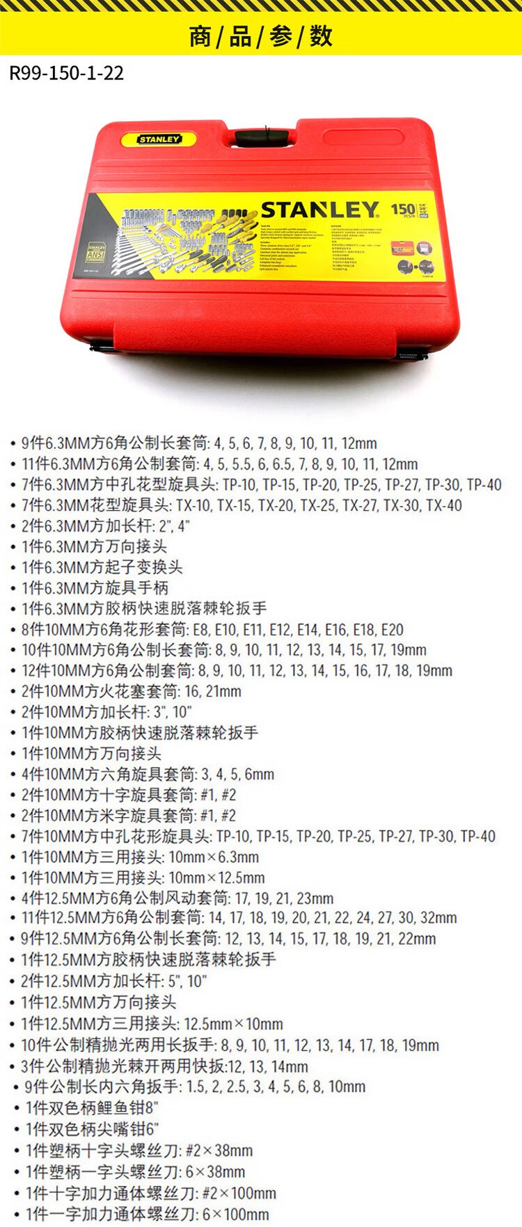 Stanley (STANLEY) tool box auto repair tool set quick release ratchet socket wrench household pliers screwdriver set R99-150-1-22
