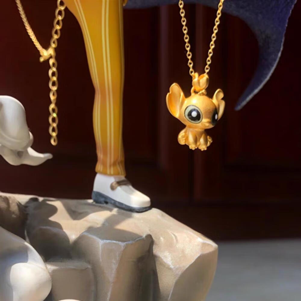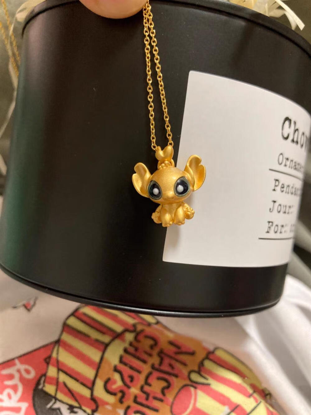 Shien plated 18K gold Stitch necklace girls fun and cute gift sterling silver pendant clavicle chain for girlfriend New product Stitch + O-shaped chain 45CM S