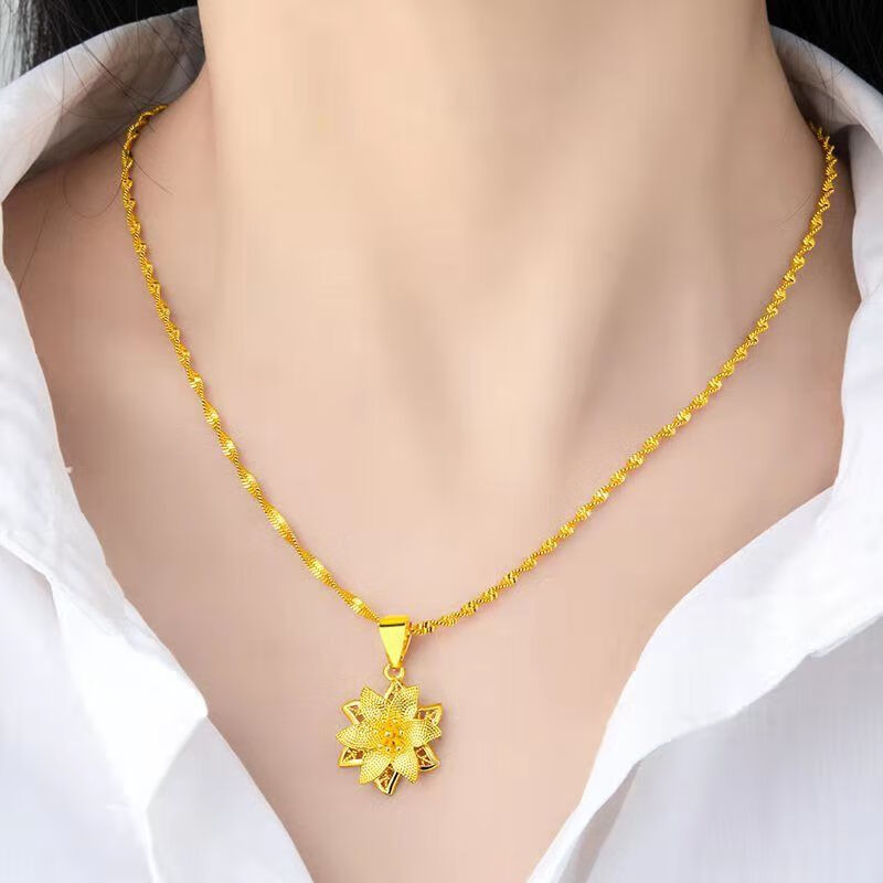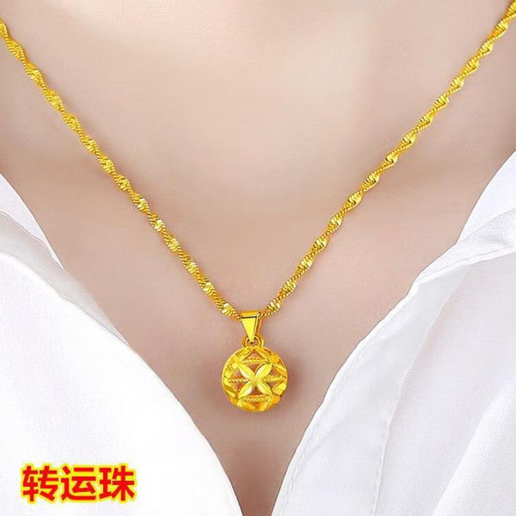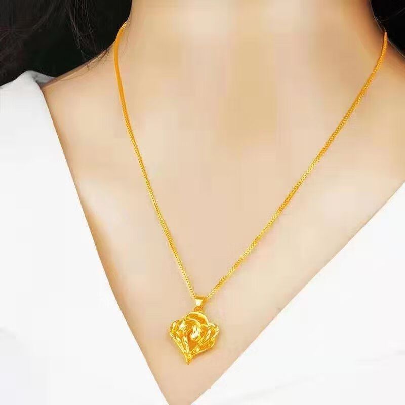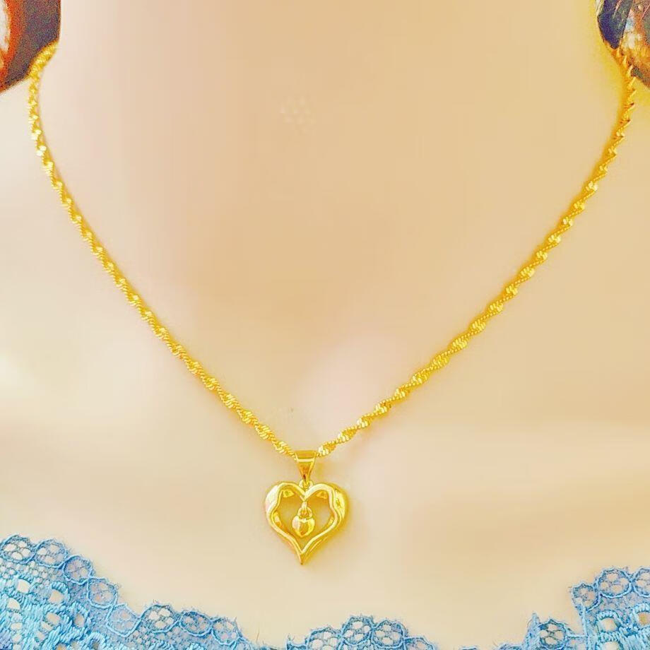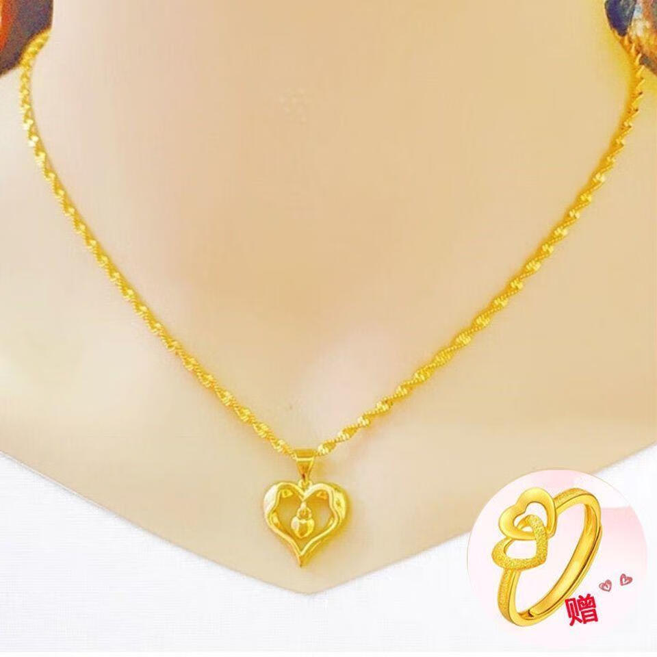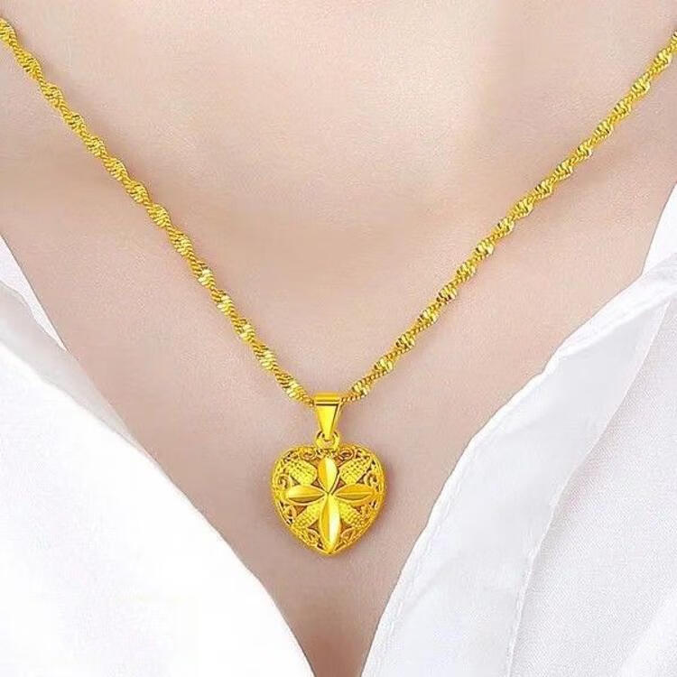 Shien gold-plated love necklace for women, 999 pendant, 18K gold-plated four-leaf clover pendant for girlfriend, wholehearted + water wave chain, free ring