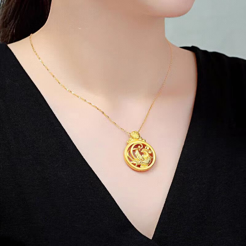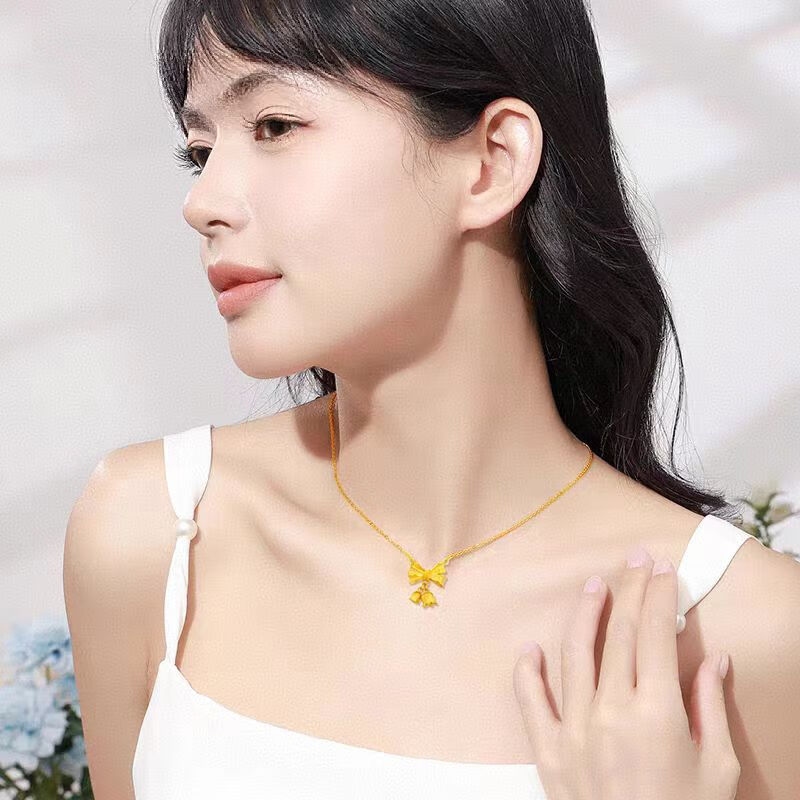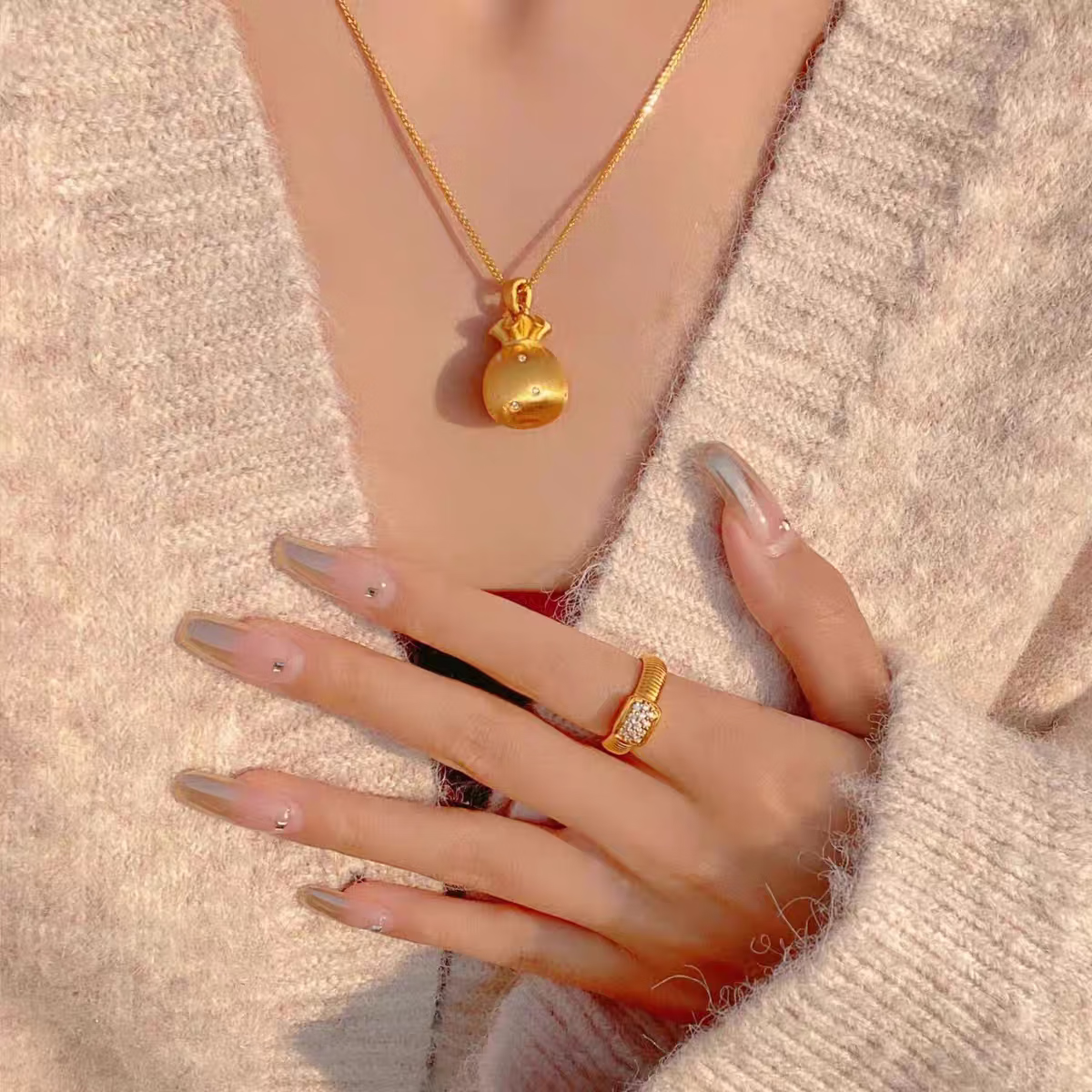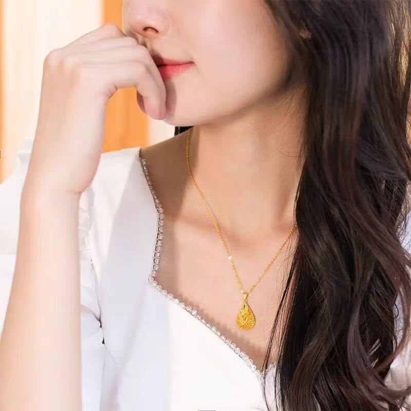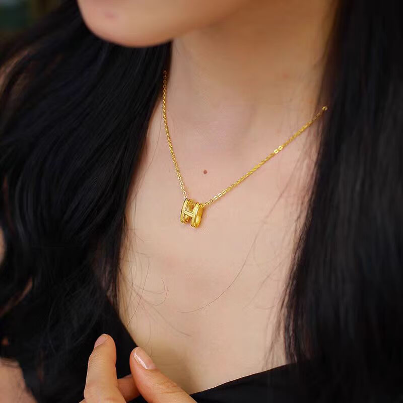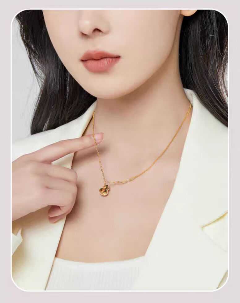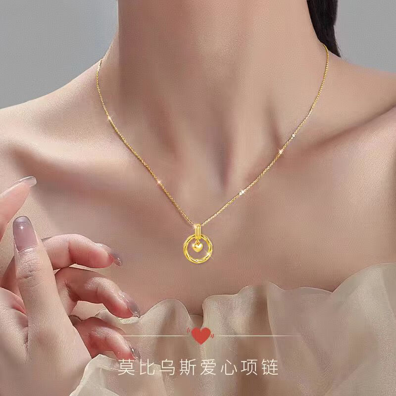 Shien gold-plated necklace for women 2024 new gold pendant plated 18K color gold clavicle chain new Möbius ring necklace