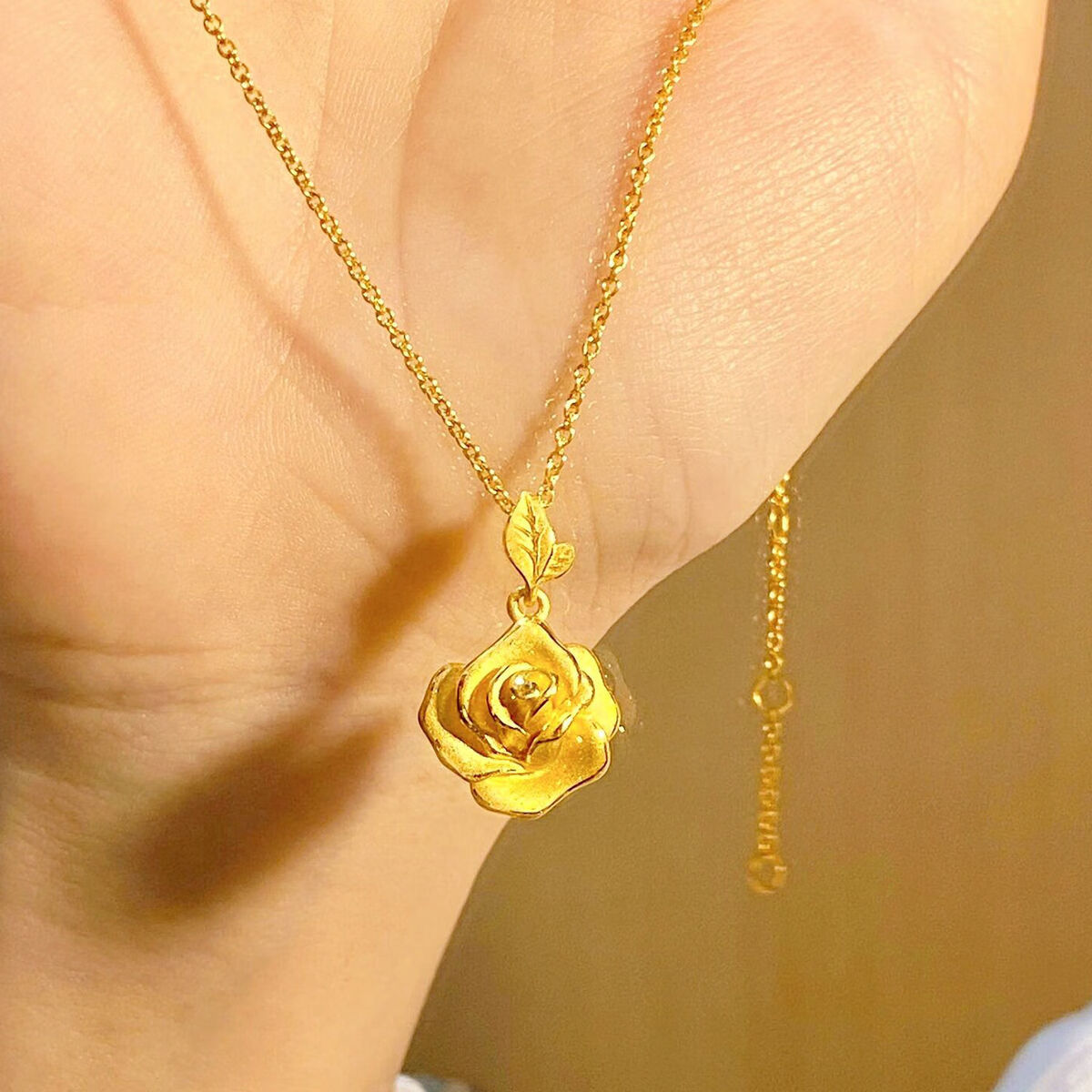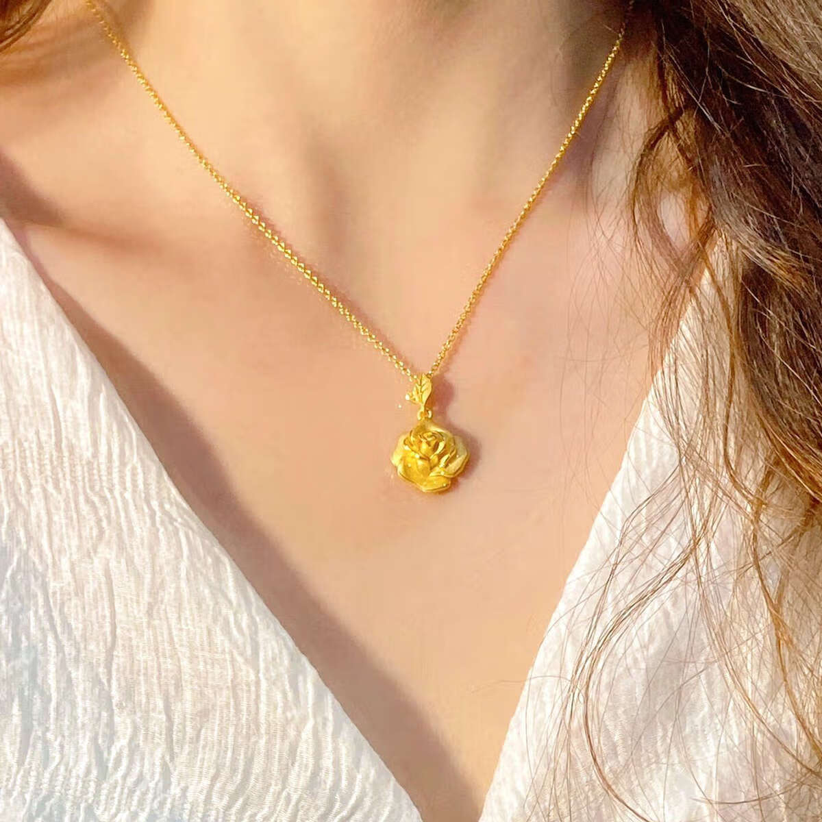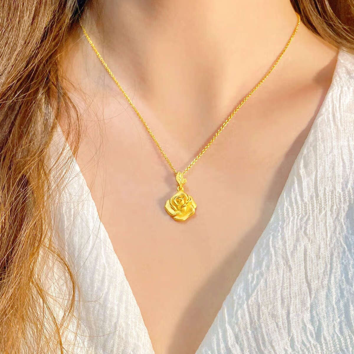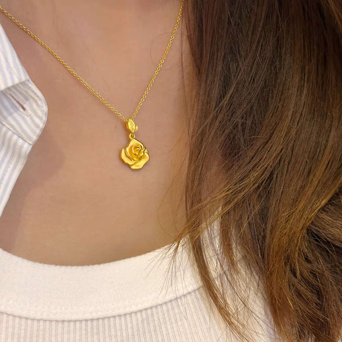 Shien-plated 18K gold rose flower necklace for women, romantic retro 99 flower pendant, clavicle chain, girlfriend gift, three-dimensional rose flower necklace