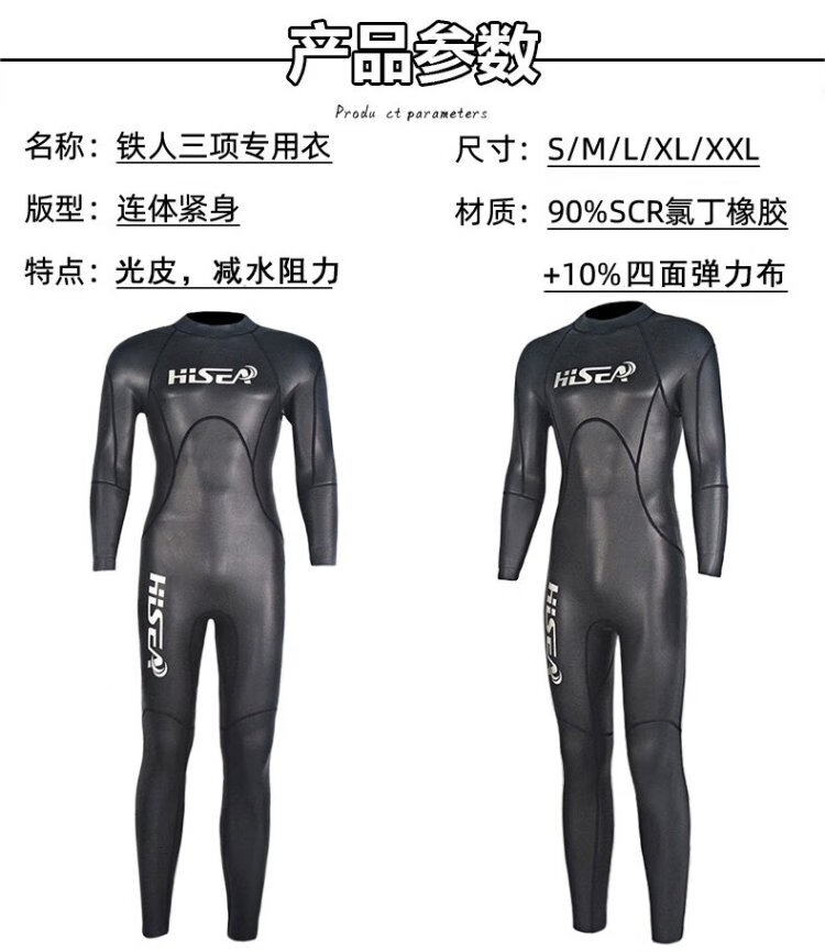 HiSEA triathlon special swimsuit professional competition light leather men and women warm 3mm wetsuit one-piece cold protection and sun protection light leather triathlon suit-men XL