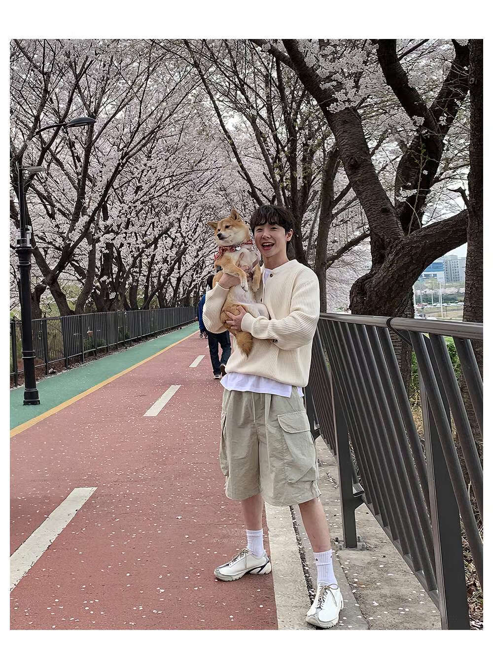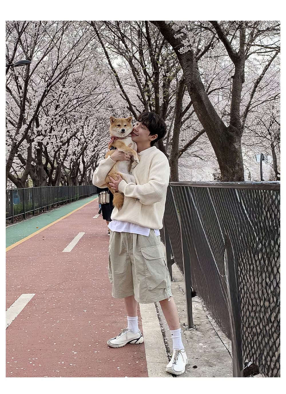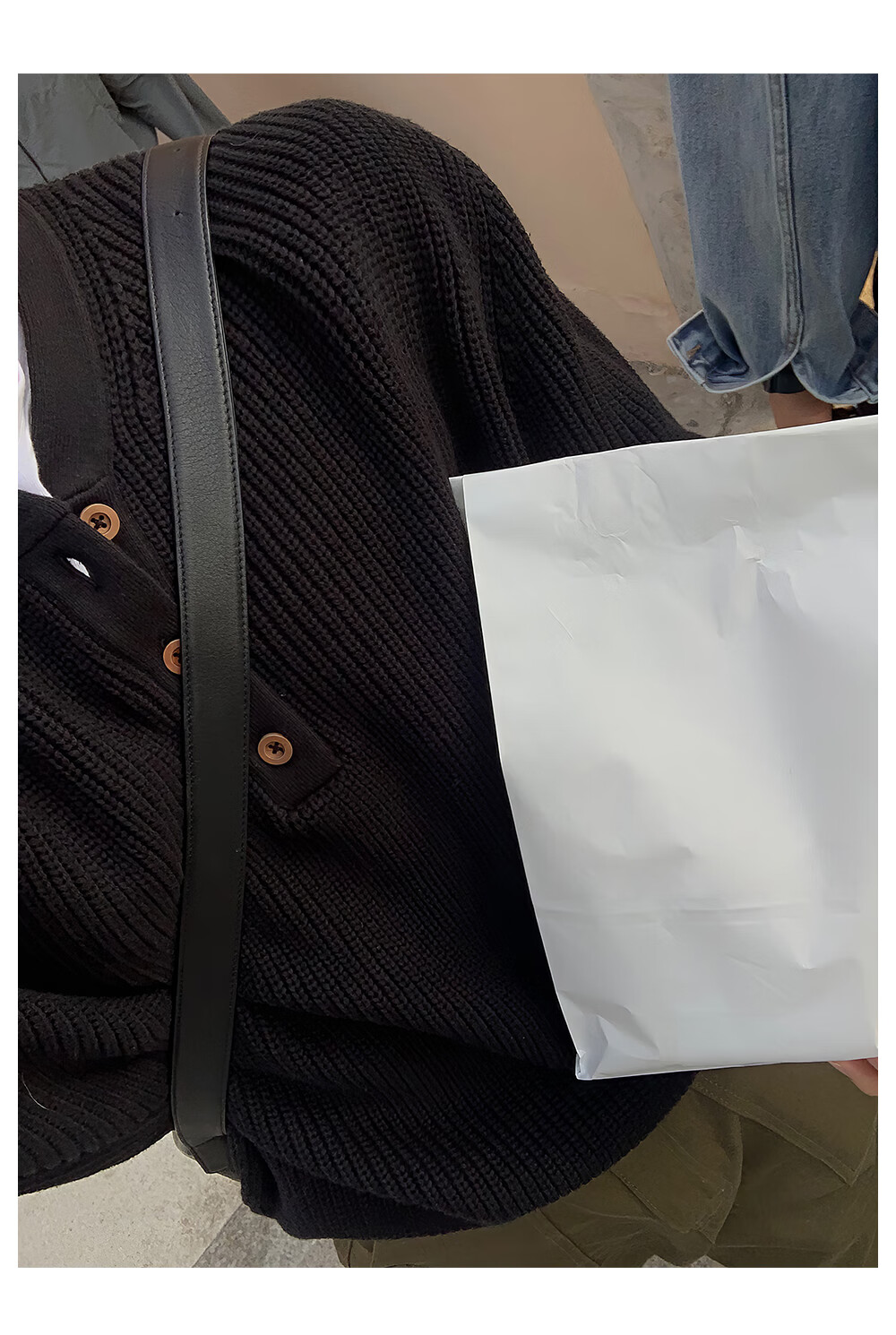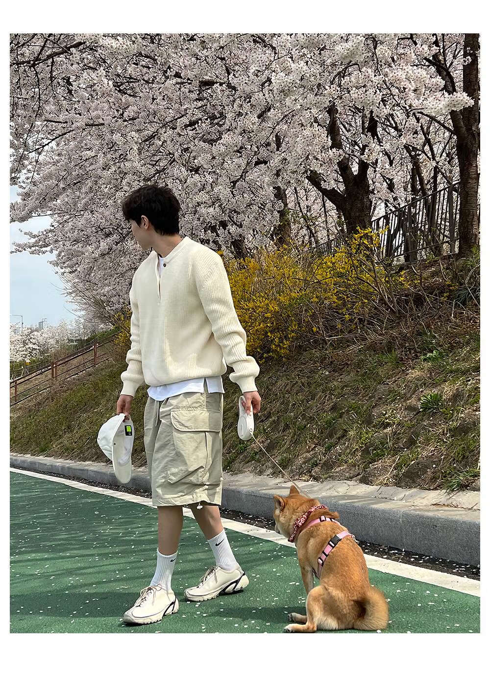 DAVID&ME American retro black Henry collar long-sleeved sweater men's lazy style thickened vertical striped pullover sweater top black M