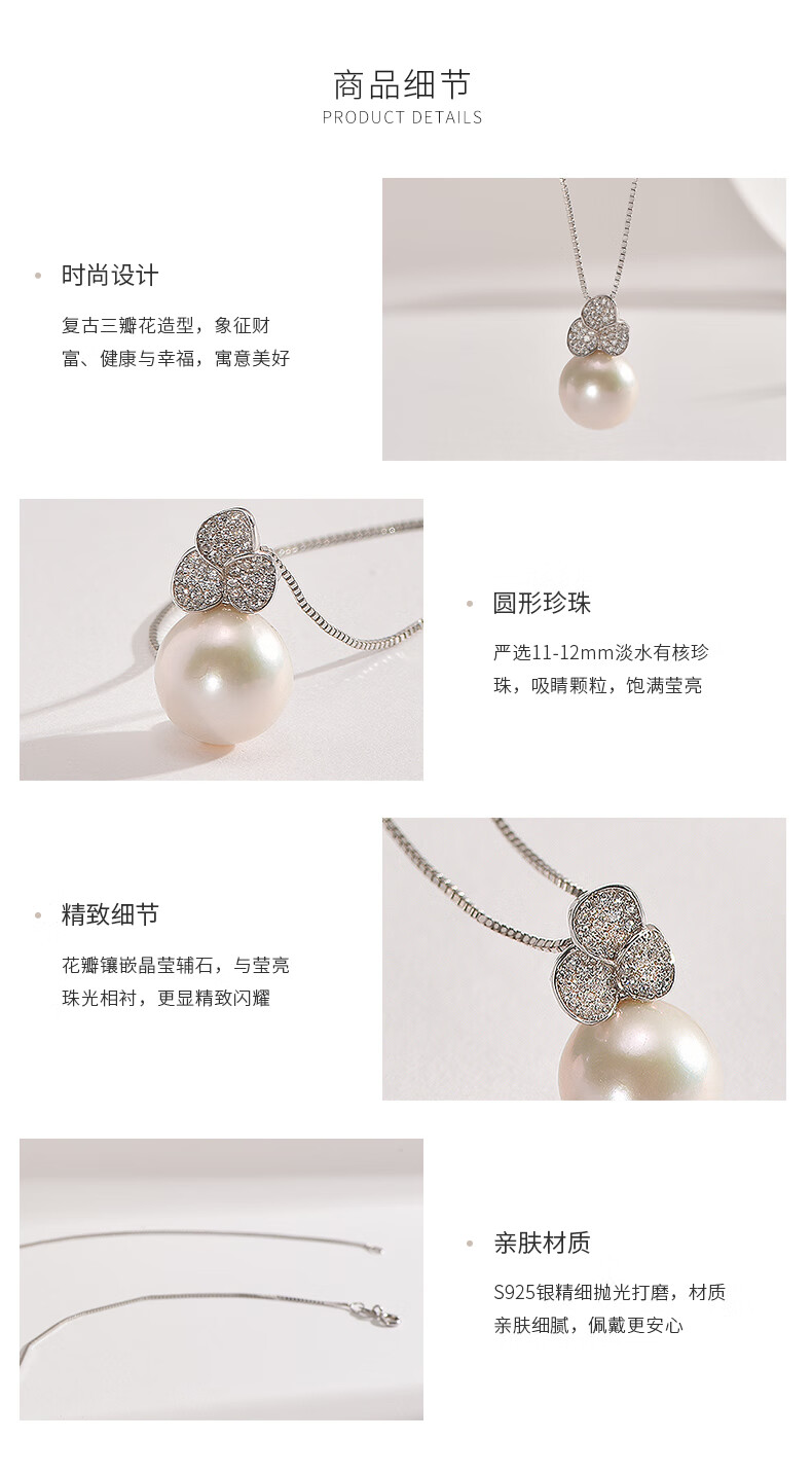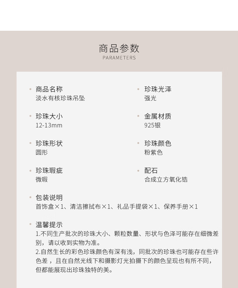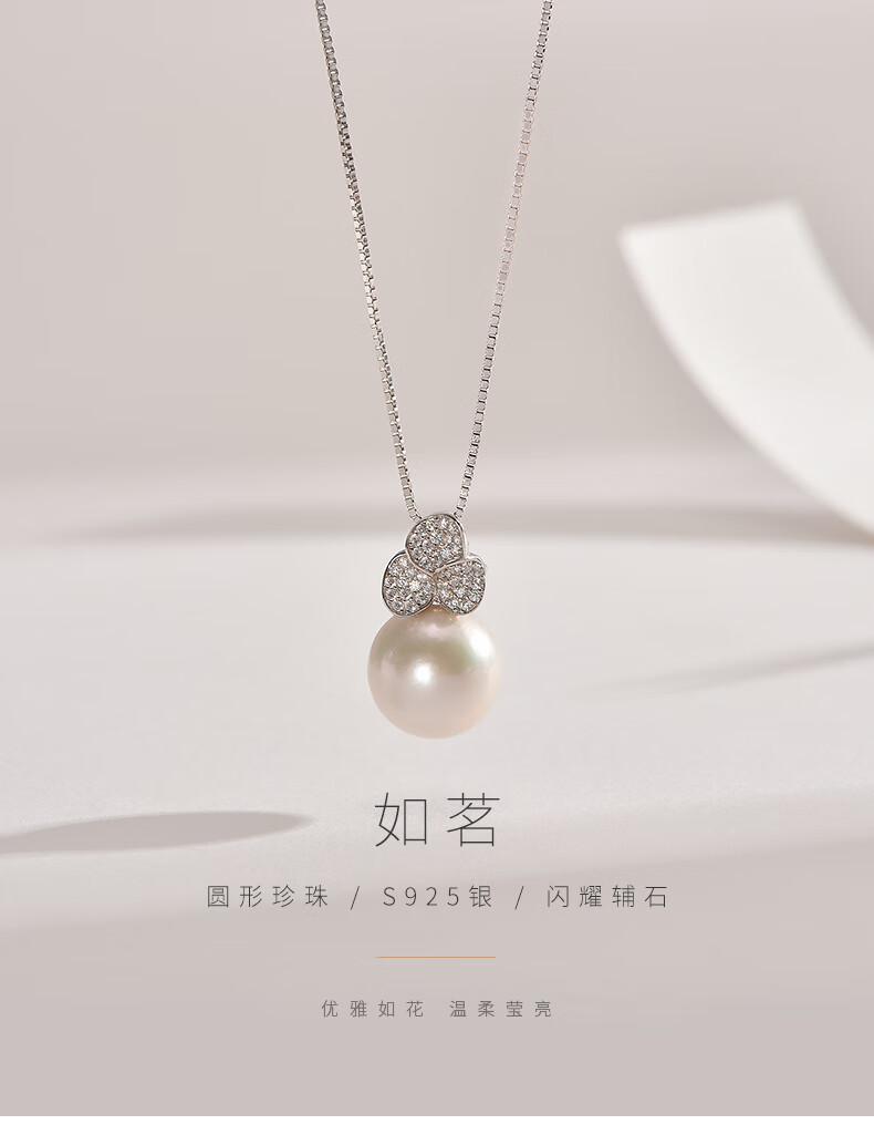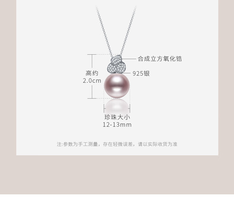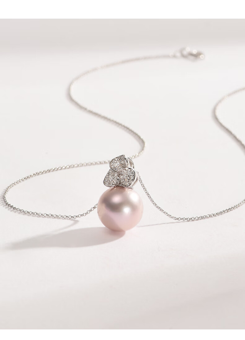Jingrun Pearl Pendant Ruming 925 Silver Freshwater Nuclear Pearl Pendant Round Pendant Birthday Gift Pink Purple 12-13mm