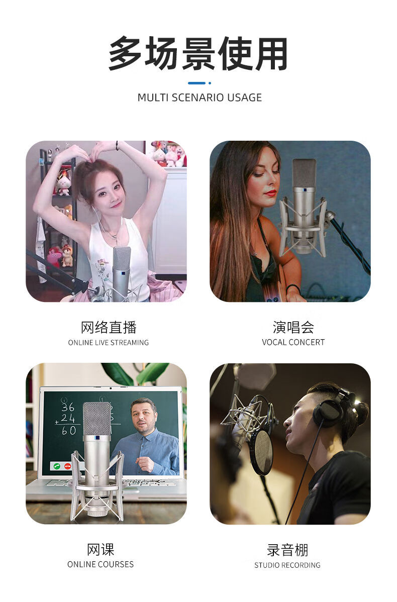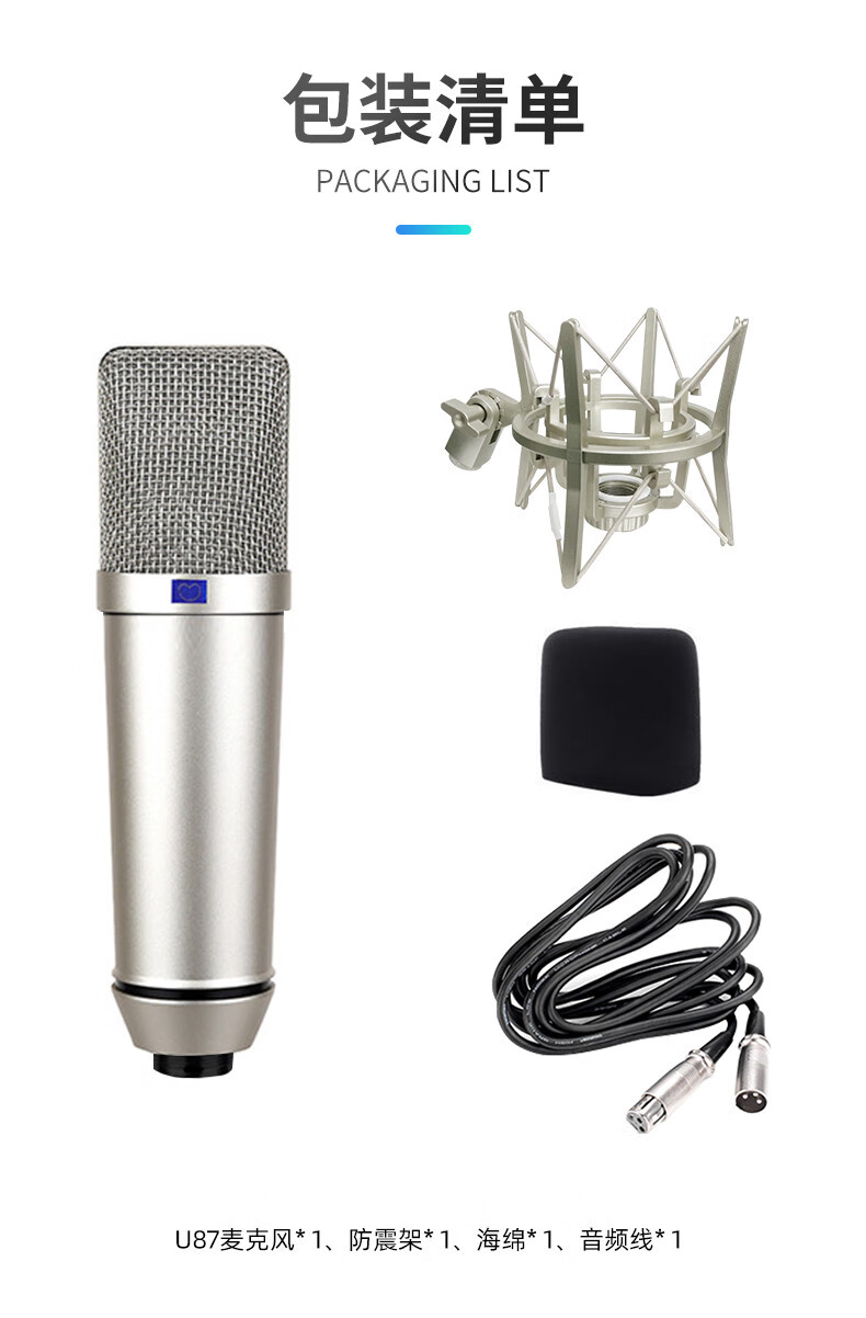 CLCEYU87 microphone live broadcast sound card microphone high configuration condenser microphone mobile phone computer external sound card noise reduction high U87 full metal model complete set + cantilever bracket