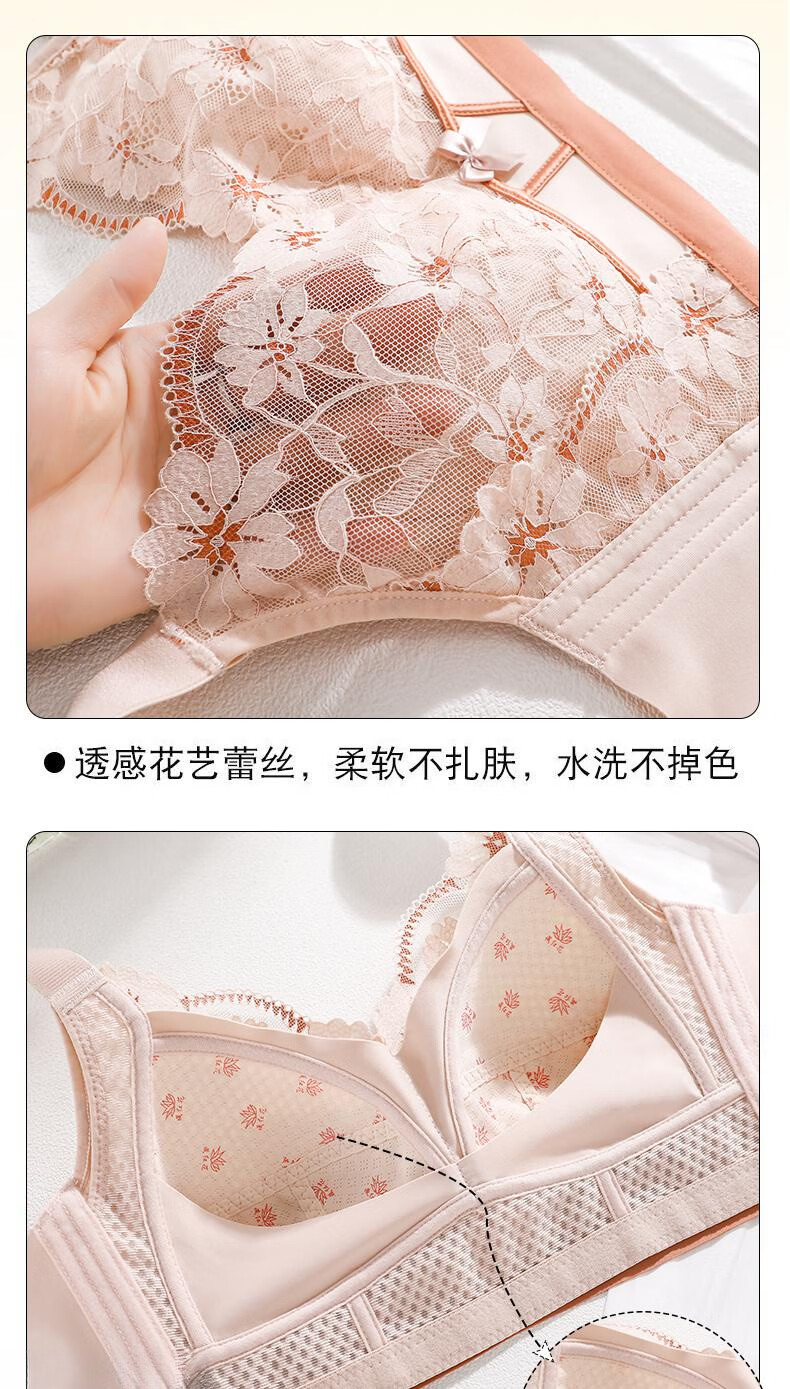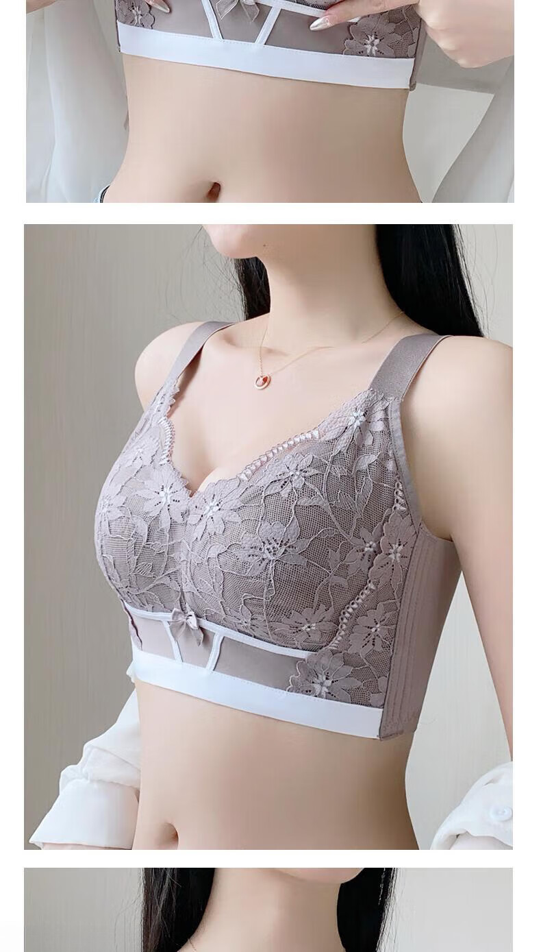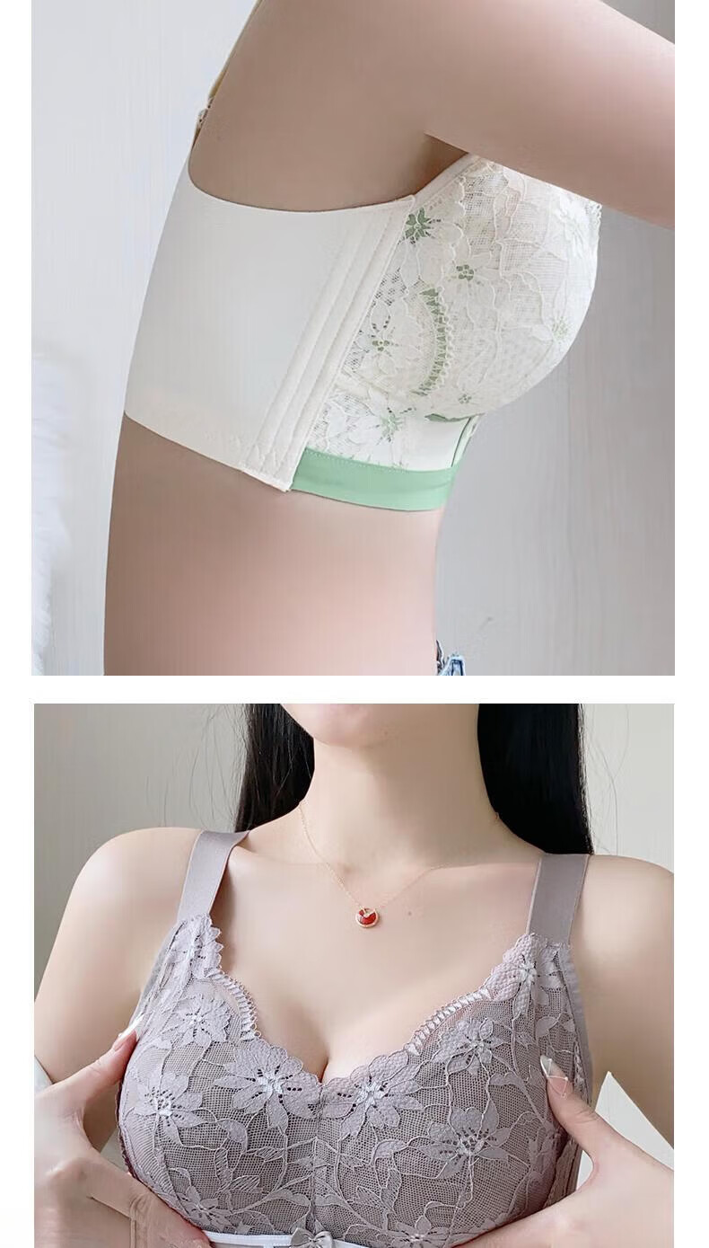 LangSha underwear for women with big breasts, small push-up, anti-sagging, breathable and comfortable lace bra, champagne + purple gray (2 pieces) 95B 42 (thin 0.2CM)