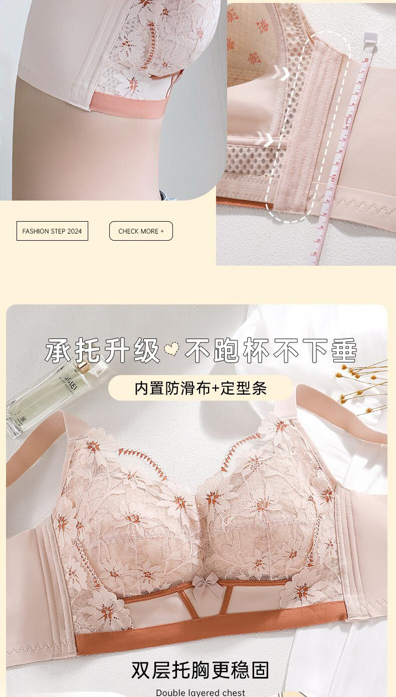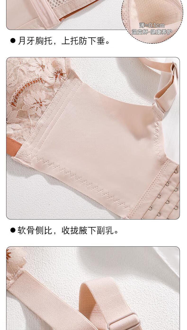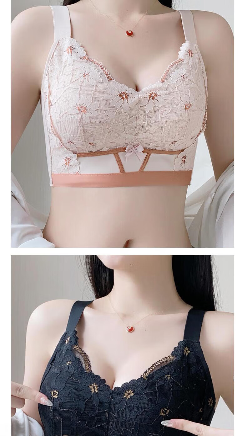 LangSha underwear for women with big breasts, small push-up, anti-sagging, breathable and comfortable lace bra, champagne + purple gray (2 pieces) 95B 42 (thin 0.2CM)