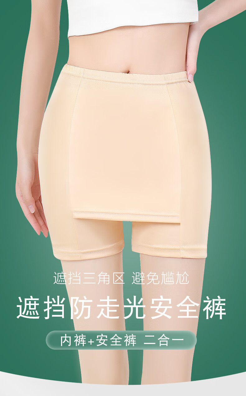 New anti-embarrassing ice silk safety pants to cover the triangle area, anti-exposure double-layer white leggings for women, skin color, anti-embarrassment, L 80-120Jin Jin is equal to 0.5 kg