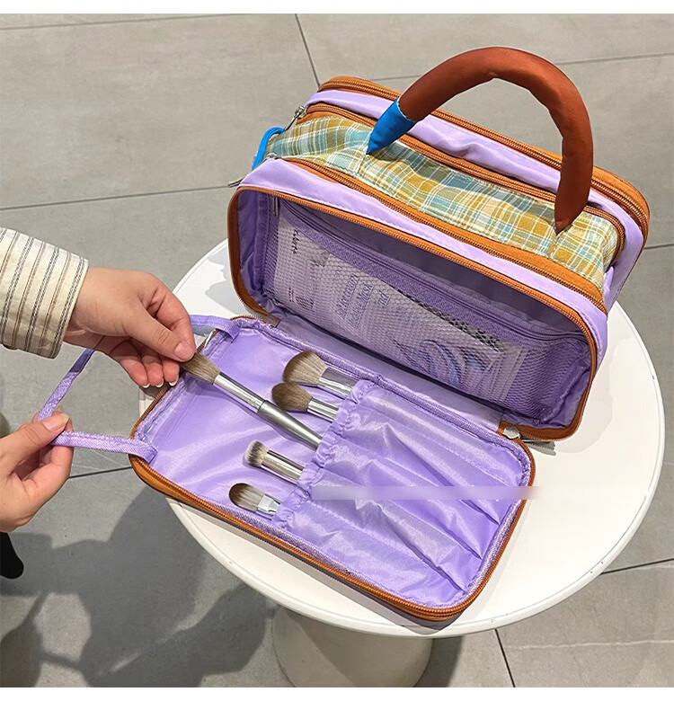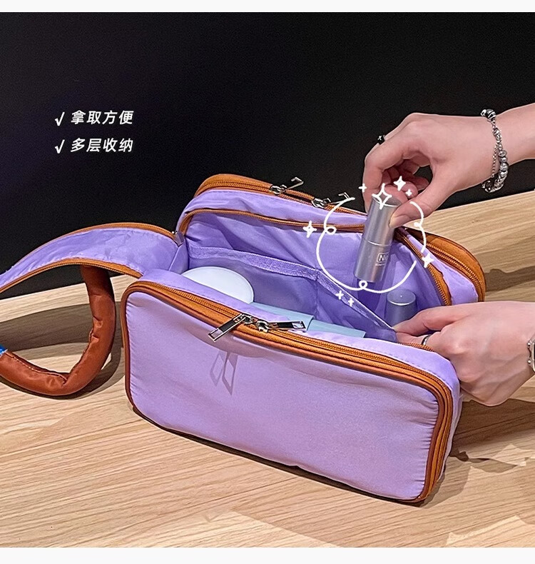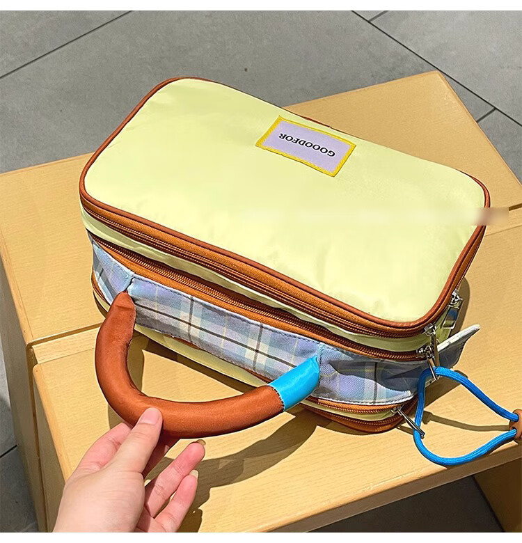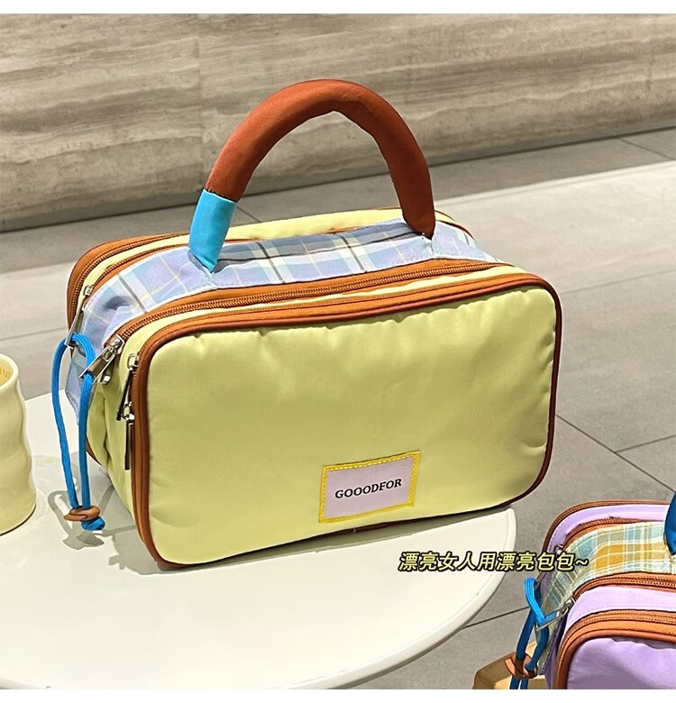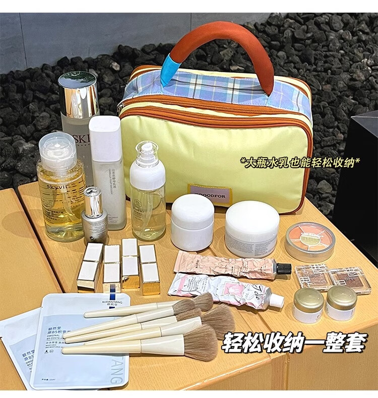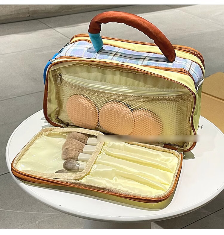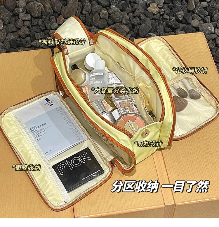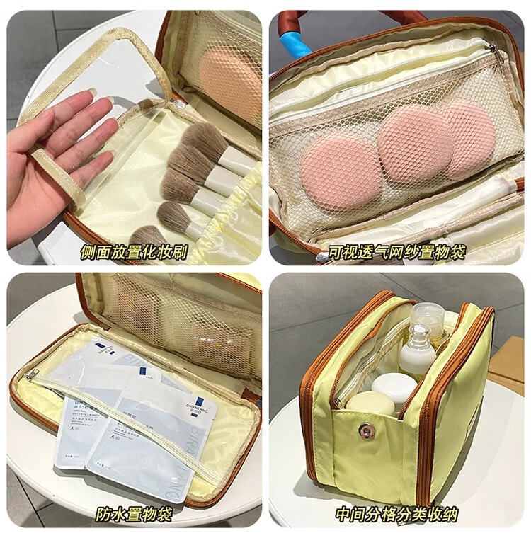 Xingxi Cosmetic Bag Women's Large Capacity Partitioned Storage 2025 New Portable Travel Toiletries Cosmetic Storage Bag Hand-held Yellow Portable Cosmetic Bag