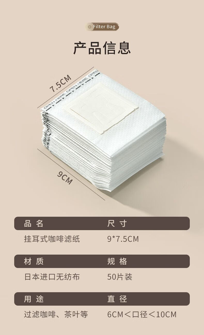 Xunliba ear-hanging coffee filter bag filter paper hand-brewed coffee boxed non-woven ear-hanging coffee filter bag disposable filter paper 25 pieces, ear-hanging design/delicate filtration/safety and no difference