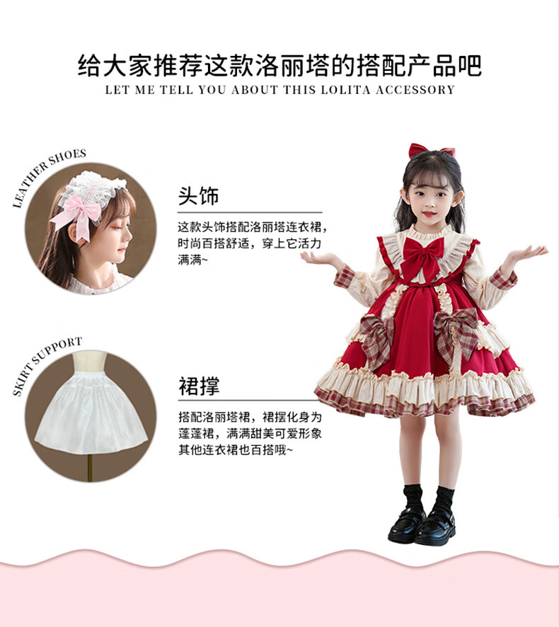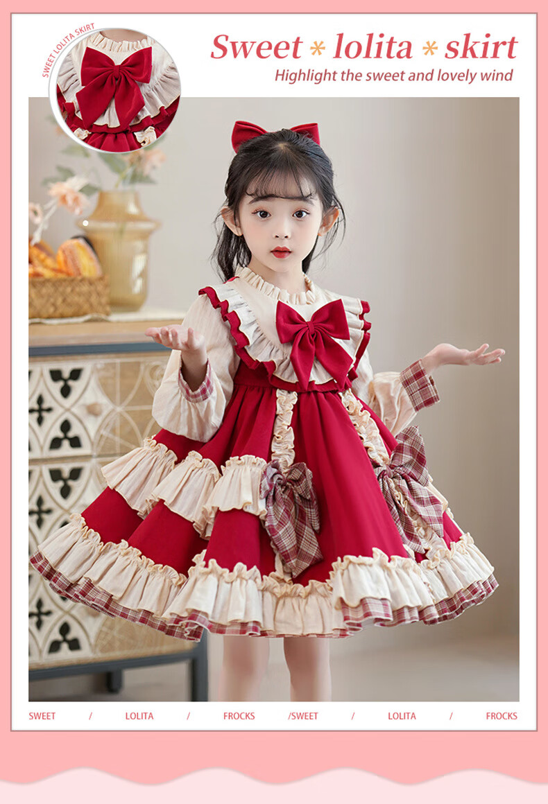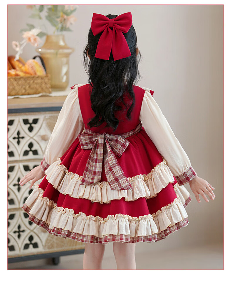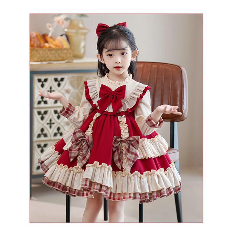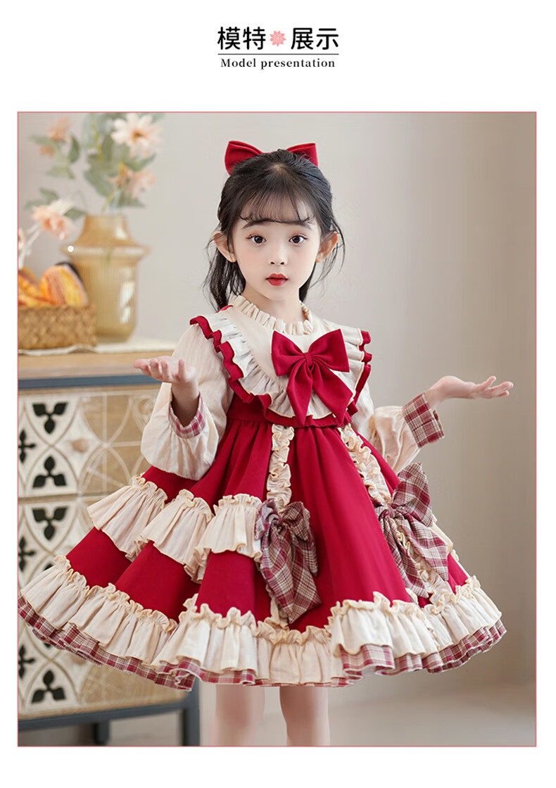 Yunshun Children's Birthday Princess Dress Girls New Autumn Lolita Dress Style Puffy Skirt Stage Performance Costume Red Without Bust 130 cm