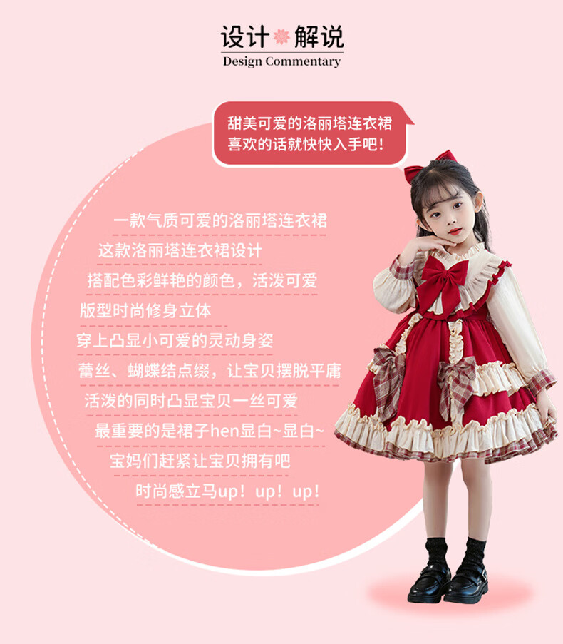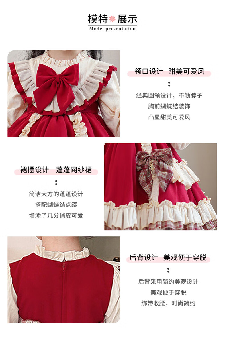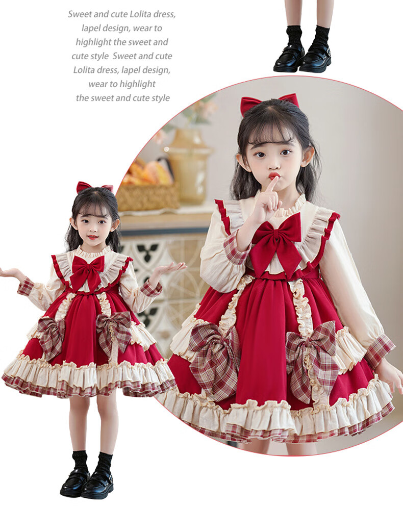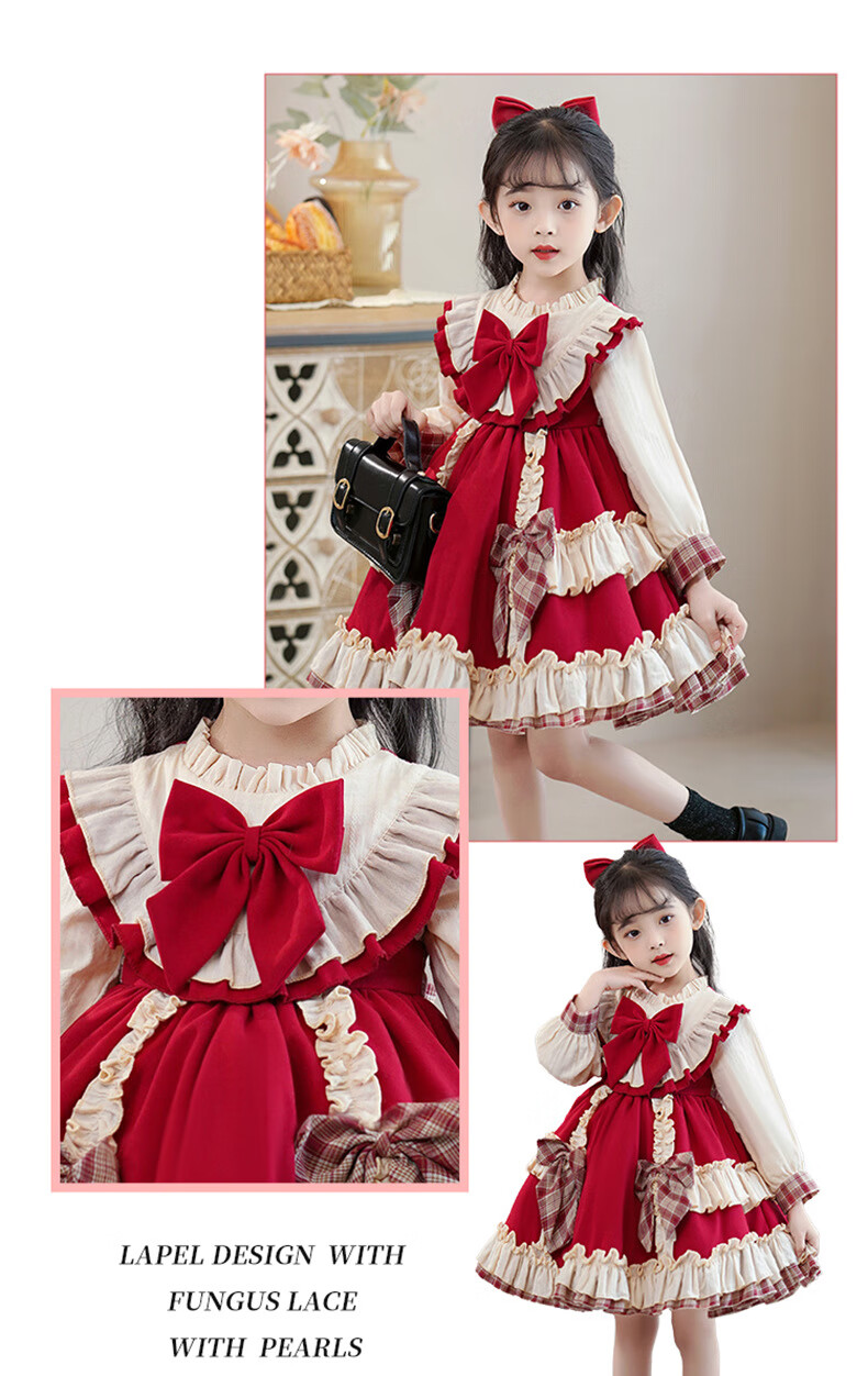 Yunshun Children's Birthday Princess Dress Girls New Autumn Lolita Dress Style Puffy Skirt Stage Performance Costume Red Without Bust 130 cm