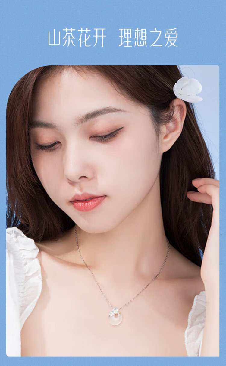 Chinese Gold Camellia Silver Necklace for Women 2025 New Safe Buckle Girls Jade Pendant Birthday Gift for Girlfriend and Wife Flower Language Ideal Love Camellia Necklace