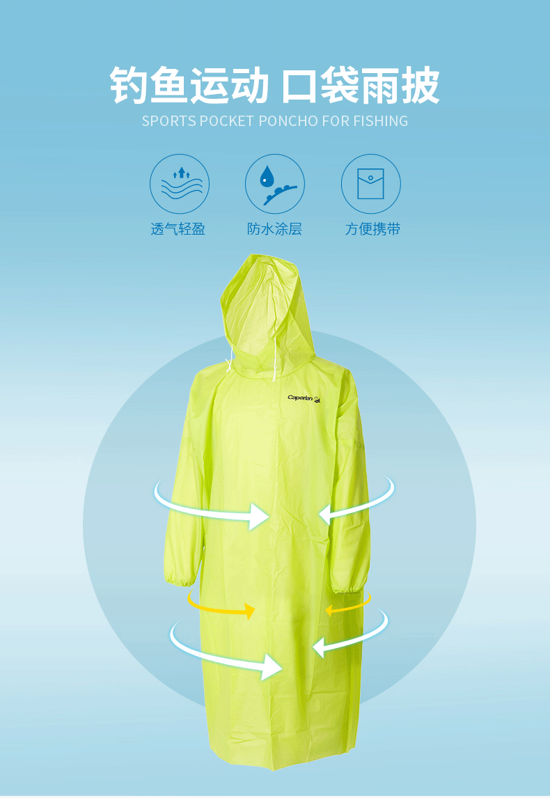 DECATHLON fishing folding raincoat poncho adult raincoat transparent long full body waterproof portable men and women outdoor non-disposable green L