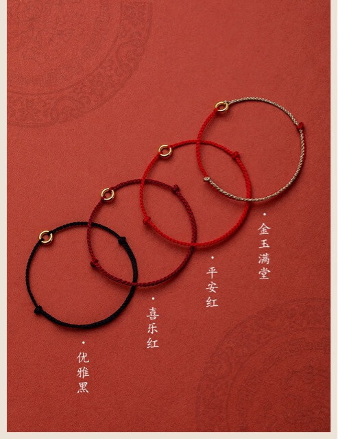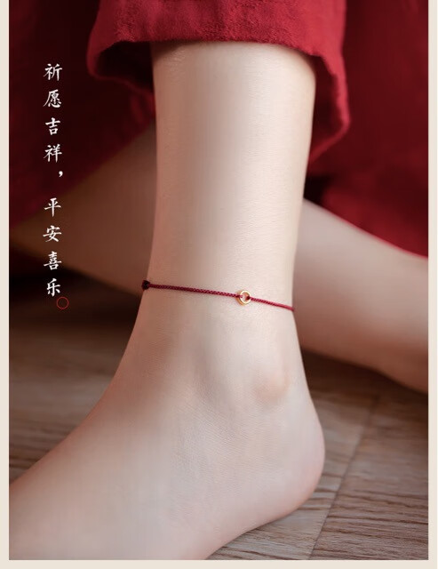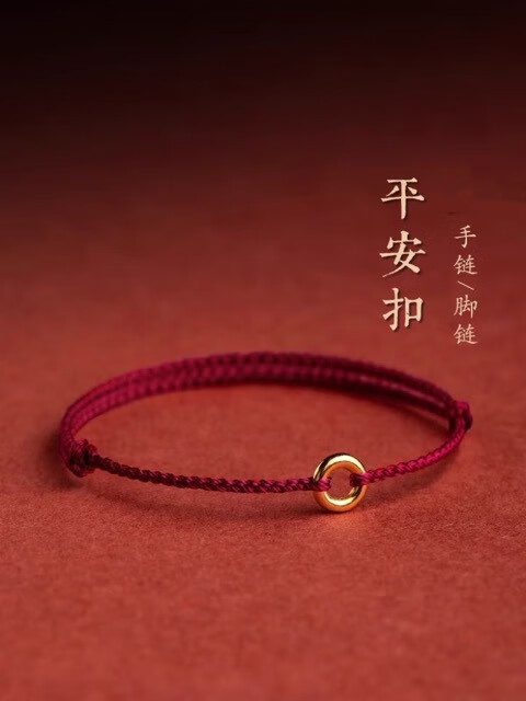 Peace buckle thin red rope bracelet for women in the year of the animal, braided bracelets and anklets for women in the Year of the Dragon, men's couple gifts, gold peace buckle peace red anklets, adjustable