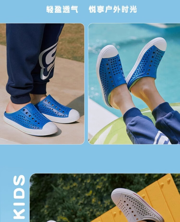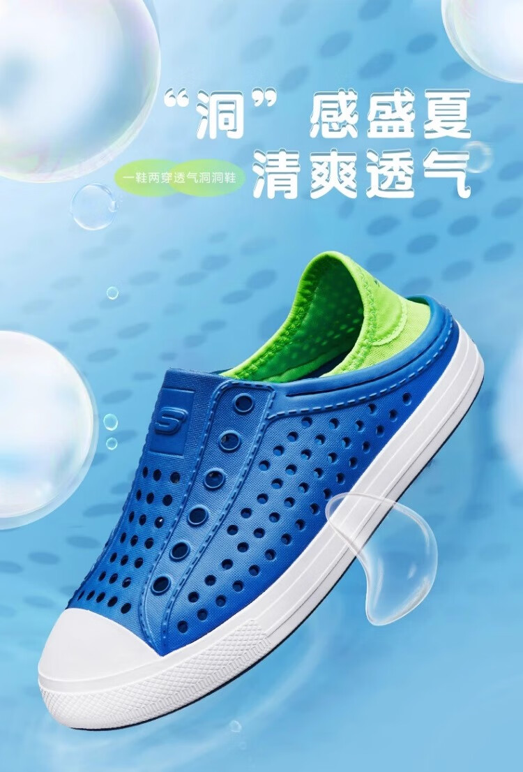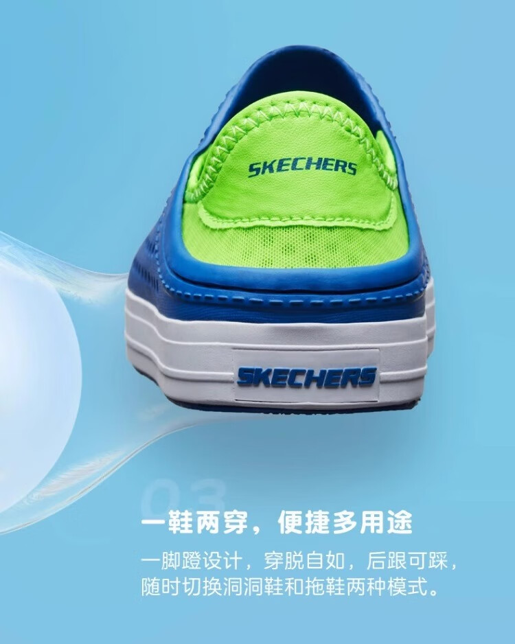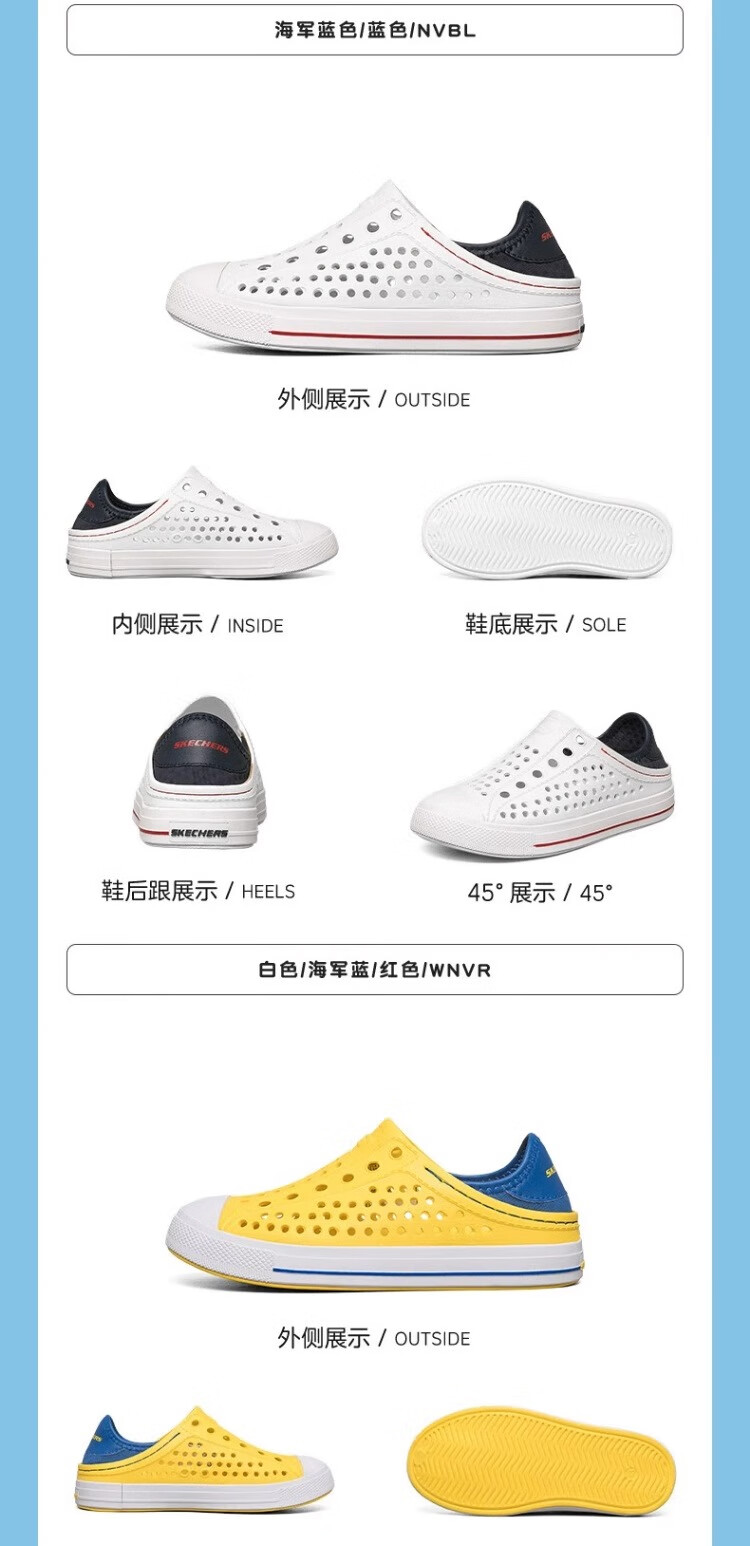 Skechers Children's Shoes Women's Autumn New Slip-on Children's Crocs One-Shoe Two-Wear Casual Breathable Sweat-wicking Sandals White/Navy Blue/Red/WNVR 27.5