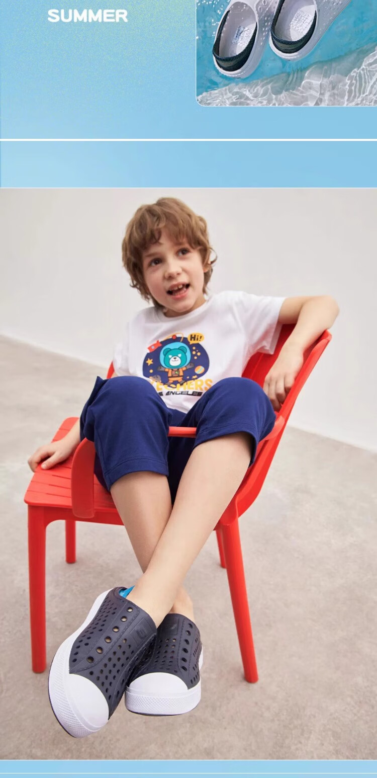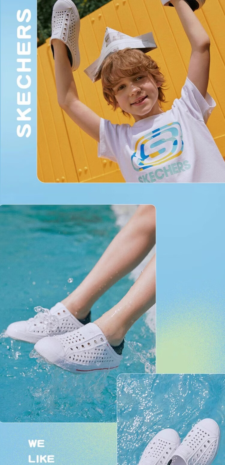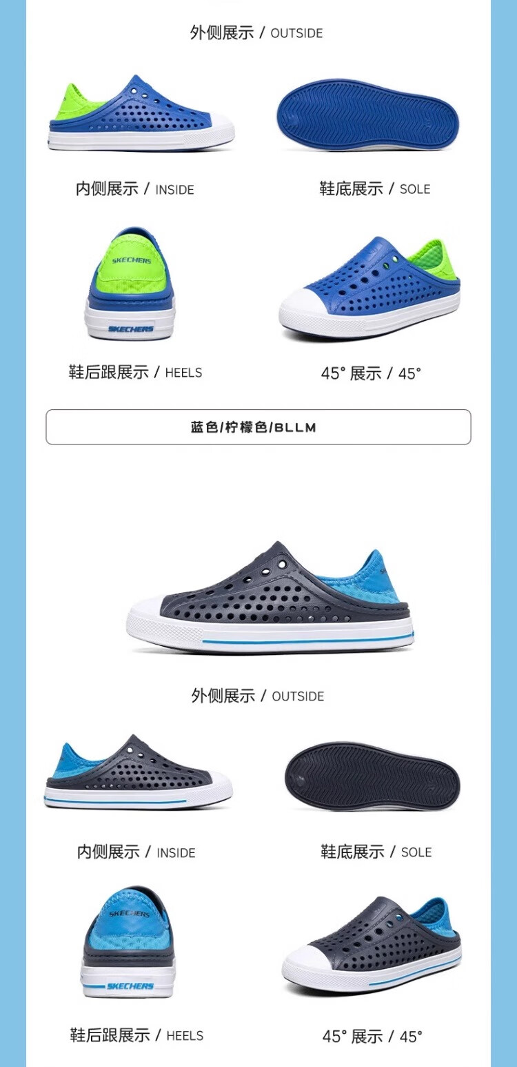 Skechers Children's Shoes Women's Autumn New Slip-on Children's Crocs One-Shoe Two-Wear Casual Breathable Sweat-wicking Sandals White/Navy Blue/Red/WNVR 27.5