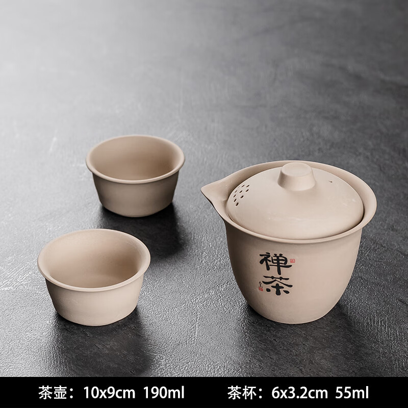 Kung Fu tea set for home, one bowl and two cups, simple tea making, ceramic tea cup for entertaining guests, rough ceramic hand pot (Zen tea), one pot and two cups